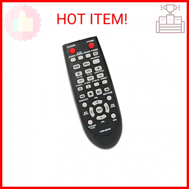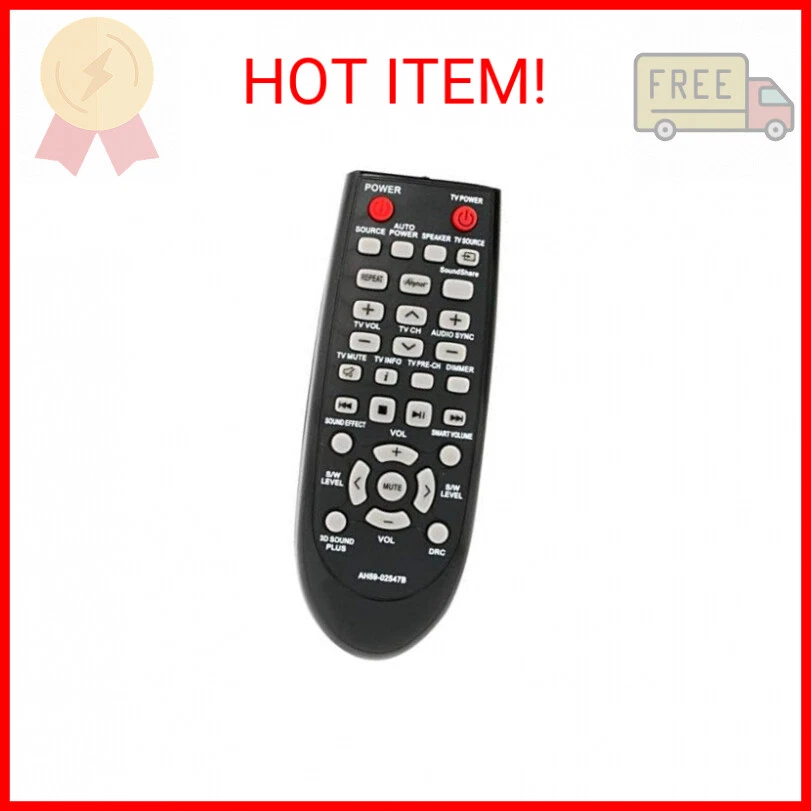 AIDITIYMI AH59-02547B Remote Control Replacement for Samsung Sound Bar HW-F450 HW-F450ZA HW-FM45 HW-FM45C PS-WF450 HWF450 HWF450ZA HWFM45 HWFM45C PSWF450 AH6802644D00 HW-F450/ZA AH68-02644D-00 - AIDITIYMI AH59-02547B Replace Remote Control fit for Samsung Soundbar Sound Bar Speaker Home Theater System. (Only works with Samsung brand, DOES NOT work with other brand device) - No programming or pairing needed, out of box, install 2 new AAA 1.5V alkaline batteries in correct direction, then it will work - Compatible with Samsung Sound Bar model HW-F450 HW-FM45 PS-WF450 HW-F450ZA HW-FM45C - HWF450 HWFM45 HWF450ZA HWFM45C PSWF450 AH6802644D00 HW-F450/ZA AH68-02644D-00 - Package Included: 1 x IR Remote Control(batteries and user manual are not included) Payments We accept the following payment methods PayPal Support Our dedicated customer support team is here to assist you from 9AM to 5PM Monday through Friday, excluding public holidays. Should you reach out to us and not recieve an immediate response, it's likely due to a higher-than-usual volume of inquires. We want to reassure you that your concerns are important to us, and we're working dilligently to get back to you. Expect a response by the next business day at the latest. Your understanding and patience are greatly valued as we strive to provide you with the best support possible! Shipping All orders are processed within 5 business days. Shipping estimates may be shown on this listing by eBay, and these are often not an accurate reflection of our shipping times. If we are experiencing a high volume of orders, shipments may be delayed by a few days. Please allow additional days in transit for delivery. If there will be a significant delay in shipment of your order, we will contact you via message. Shipping rates & delivery estimates Shipping is often free, but if charges for your order apply they will be calculated and displayed at checkout.