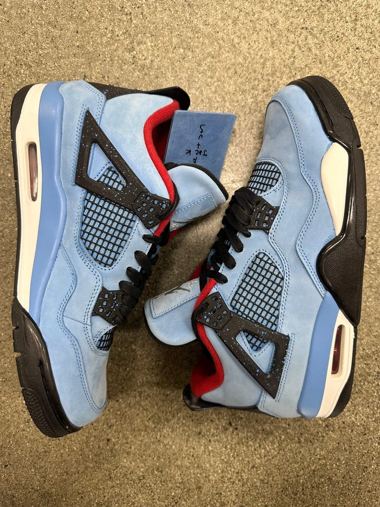 AIR JORDAN 4 TRAVIS SCOTT - SIZE 9.5 (WORN) AIR JORDAN 4 TRAVIS SCOTT - SIZE 9.5 (WORN) × × × × × Shipping info Click the Shipping & Payments tab above the listing description for more info Price: $20.00 (local shipping) Click the Shipping & Payments tab above the listing description for more info! Additional delivery notes PICK UP OPTION Sorry, our items are NOT available for pick-up. PAYMENT Immediate payment is required upon selecting "Buy It Now" or upon checking out through the cart. We accept payment via U.S. PayPal accounts and all Major Credit Cards, Debit Cards & Google Pay. We are legally required to collect sales tax in those states and localities where we maintain a physical presence (nexus). The applicable amount of sales tax charged to an order will be calculated based on the shipment destination's state and local sales tax laws. Thank you for shopping with us on eBay! Additional Information No additional information at this time Ask seller a question You might also like Air Jordan 1 Retro High OG BG "GAME ROYAL" Air Jordan 1 Retro High OG GS "OBSIDIAN UNC" Air Jordan 1 High 85 "NEUTRAL GREY" Air Jordan 1 Retro High OG GS "SPIDER-MAN/ACROSS THE SPIDER-VERSE" Contact To contact our Customer Service Team, simply click the button here and our Customer Service team will be happy to assist. Ask seller a question © Sole Supremacy Shipping & Payments Shipping is a flat rate across US at a rate of $20.00 Payment Accepted Payment Methods Immediate payment is required upon selecting "Buy It Now" or upon checking out through the cart. We accept payment via U.S. PayPal accounts and all Major Credit Cards, Debit Cards & Google Pay. We are legally required to collect sales tax in those states and localities where we maintain a physical presence (nexus). The applicable amount of sales tax charged to an order will be calculated based on the shipment destination's state and local sales tax laws. Thank you for shopping with us on eBay! Returns Returns are not accepted Buyer will pay for return shipping. eBay integration by