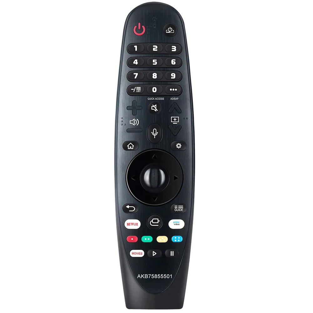 New AKB75855501 MR20GA Voice Magic Replace Remote Control Applicable for LG Smart TV Please pair the remote with your TV before use. Compatible with below LG TV models: 43UN7300PUF 43UN7300PUC 43UN7300AUD 43UN7300PUD 43UN7100PUA 43UN7000PUB 43UN6950ZUA 43UN6951ZUA 43UN6955ZUF 49UN7300PUC 49UN7300PUF 49UN7300AUD 49UN7300PUB 49UN7100PUA 49UN7000PUB 50UN8050PUD 50UN8000PUB 50UN7300PUF 50UN7300PUC 50UN7300AUD 50UN7300PUB 50UN7000PUC 50UN6950ZUF 50UN6951ZUF 50UN6955ZUF 55UN8050PUD 55UN8000PUB 55UN7300PUF 55UN7300PUC 55UN7300AUD 55UN7300PUB 55UN7310PUC 55UN7100PUA 55UN7000PUB 55UN6950ZUA 55UN6951ZUA 55UN6955ZUF 60UN7300PUA 60UN7310PUA 60UN7000PUB 60UN6950ZUA 60UN6951ZUA 65UN8500PUI 65UN8500AUJ 65UN8050PUD 65UN8000PUB 65UN7300PUF 65UN7300PUC 65UN7300AUD 65UN7300PUB 65UN7310PUC 65UN7100PUA 65UN6950ZUA 65UN6951ZUA 65UN6955ZUF 65UN9000AUJ 70UN6950ZUA 70UN6955ZUC 70UN7370PUC 70UN7370AUD 70UN7370PUB 70UN7100PUA 70UN7070PUA 75UN8570PUC 75UN7370PUE 75UN8000PUB 75UN8570AUD 75UN7370AUH 75UN7370PUB 75UN7100PUD 75UN7070PUC 75UN6950ZUD 75UN6951ZUD 75UN6955ZUD 75UN6970PUD 75UN9070AUD 82UN8570PUC 82UN8570PUB 82UN8570AUD 82UN8070PUD 86UN8570PUC 86UN8570PUB 86UN8570AUD 86UN9070AUD Power Supply: 2X 1.5V AA Alkaline Battery Package Content: 1X Remote Control