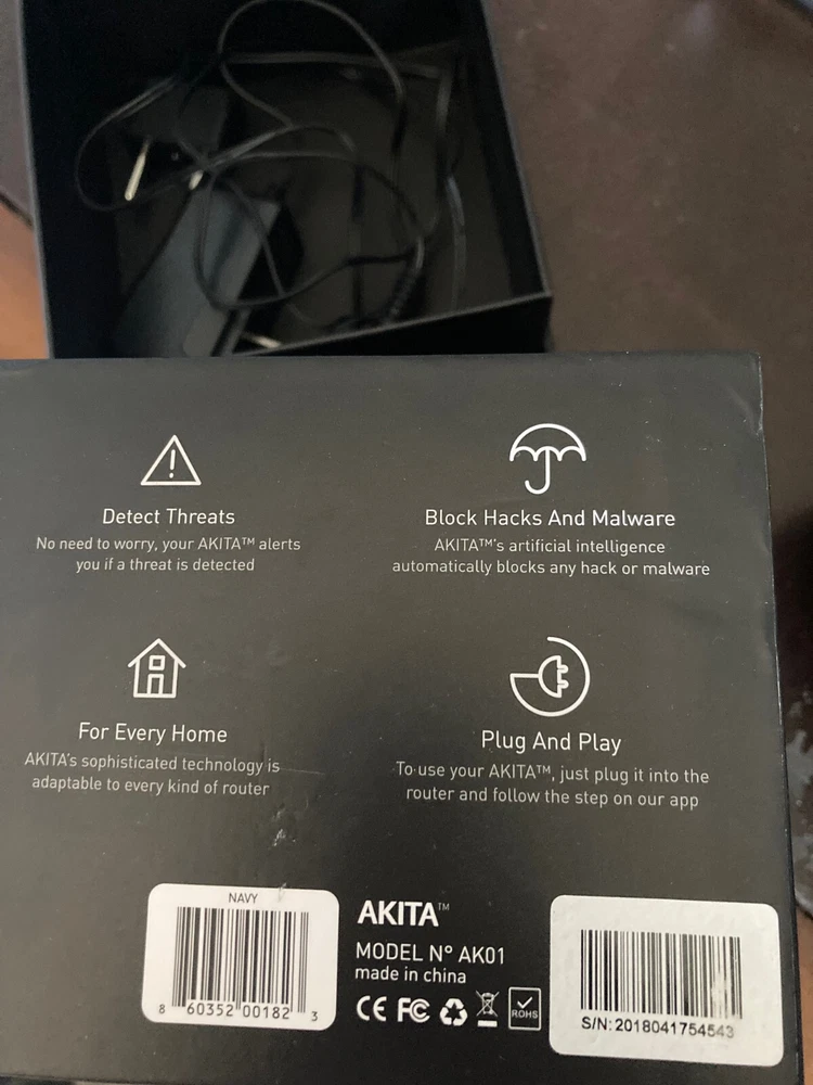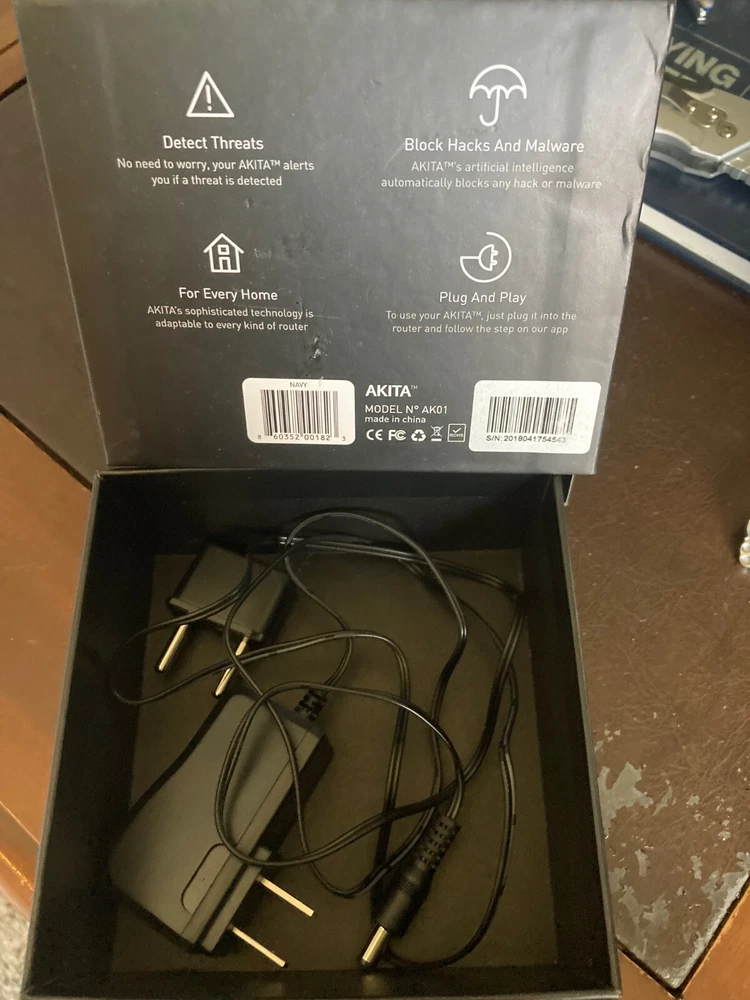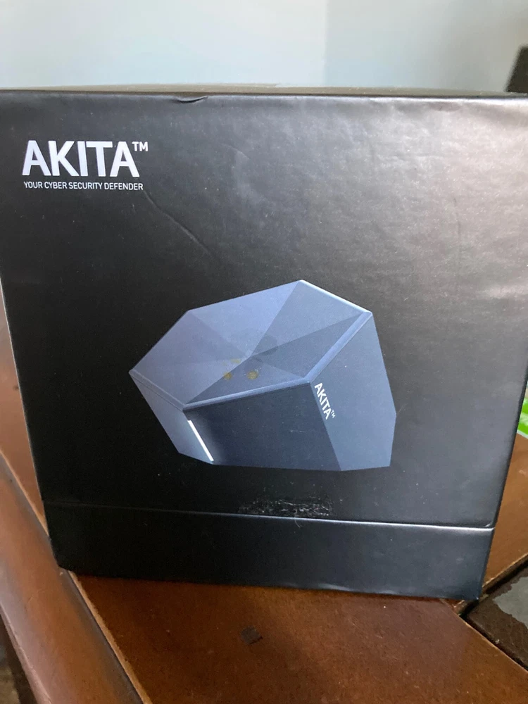 THE SMARTEST HOME PROTECTION POSSIBLE-AKITA VPN ! Upon Akita activation, security vulnerabilities of your Home Network are audited using patent-backed methods and third party Intelligence Sources that were previously only accessible by enterprises and the military. Purchased as original Kickstarter Campaign, 3 left of 10, we use one and have for 4 years now! Check out the easy to use and informative YOUTUBE video for the Akita AK01 HERE: https://www.youtube.com/watch?v=tWaSi021qzY If a threat is found Akita messages you. If you don’t recognize it, you can escalate it to experts at Akita, who are standing by 24/7. Akita gets smarter as you use it learning from networks and updating constantly. Akita learns your habits to protect your network, adapting to your privacy and security needs. Unlike a firewall, Akita does not reroute network traffic and doesn’t affect your network speed, so it will not slow your connection. It works according to GDPR & CCPA regulations. Akita users can choose to join the Guardians community and earn Loyalty Points by helping other community members. The points allow you to earn back the money you spent on your Akita device. STEP ONE - CHECKS SECURITY VULNERABILITIES OF YOUR HOME NETWORK- STEP TWO - FIX DISCOVERED SECURITY VULNERABILITIES ACCORDING TO THE USER-FRIENDLY MANUAL - STEP THREE - FREE WEEKLY SECURITY REPORTS - STEP FOUR - LET AKITA PROTECT YOUR HOME NETWORK- Akita.Cloud is SaaS platform for Home Networks Security that has a 24/7 human-assisted Security Operations Center to ensure your home network is secured from IoT invasions such as botnets, cryptojacking, and AI-powered attacks in real-time. STEP FIVE – You can fix all discovered by your AKITA security problems by yourself using our user-friendly remediation procedures. If you need personal help form AKITA SoC team to fix discovered Security Vulnerabilities – you could purchase annual Subscription or One Time Service Free Shipping Lower 48 states, original box, instructions, power cord and ethernet cord. Easy, foolproof, no subscription required but you can upgrade if you desire. Check out our nearly 600 perfect EBAY reviews, all items are smoke free and kept in climate controlled rooms.