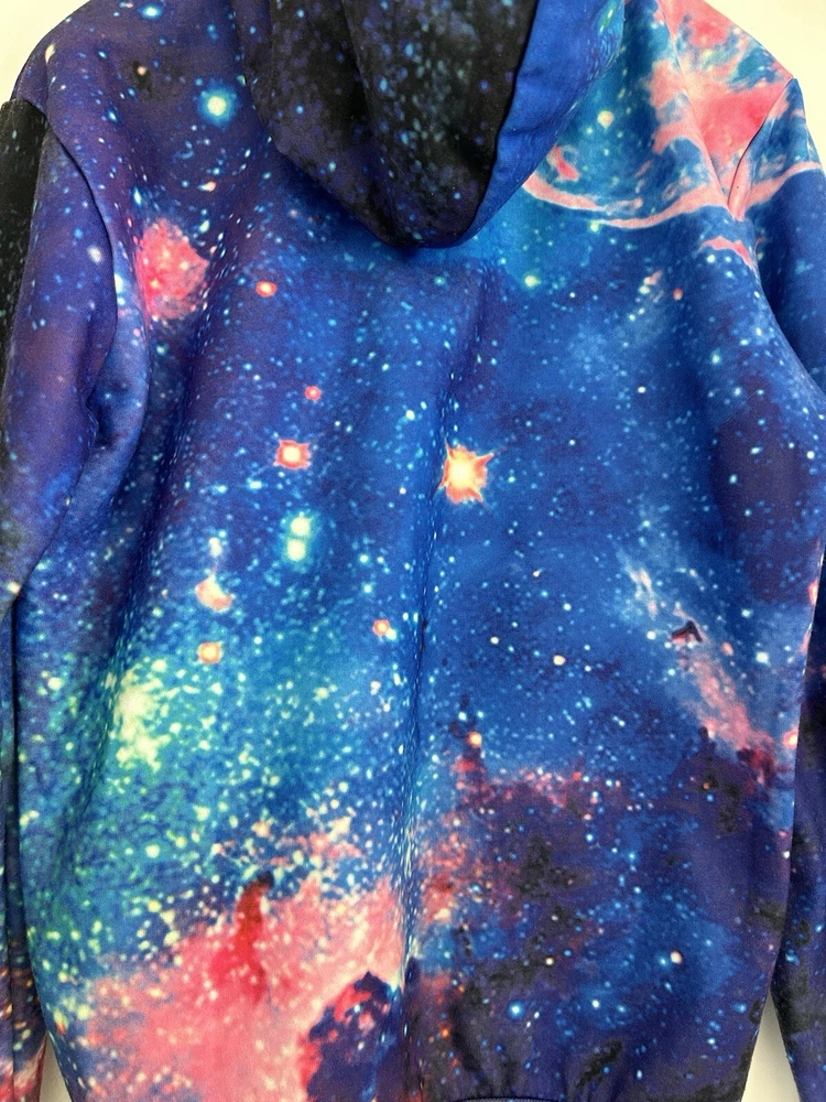 This sweatshirt is a total game-changer! The galaxy print is so eye-catching and vibrant—I get compliments every time I wear it. Super soft, cozy, and perfect for chilly days. The full-zip design makes it easy to layer, and the fit is just right. Love that it’s unisex—great for anyone who wants a stylish, comfy look. A must-buy!