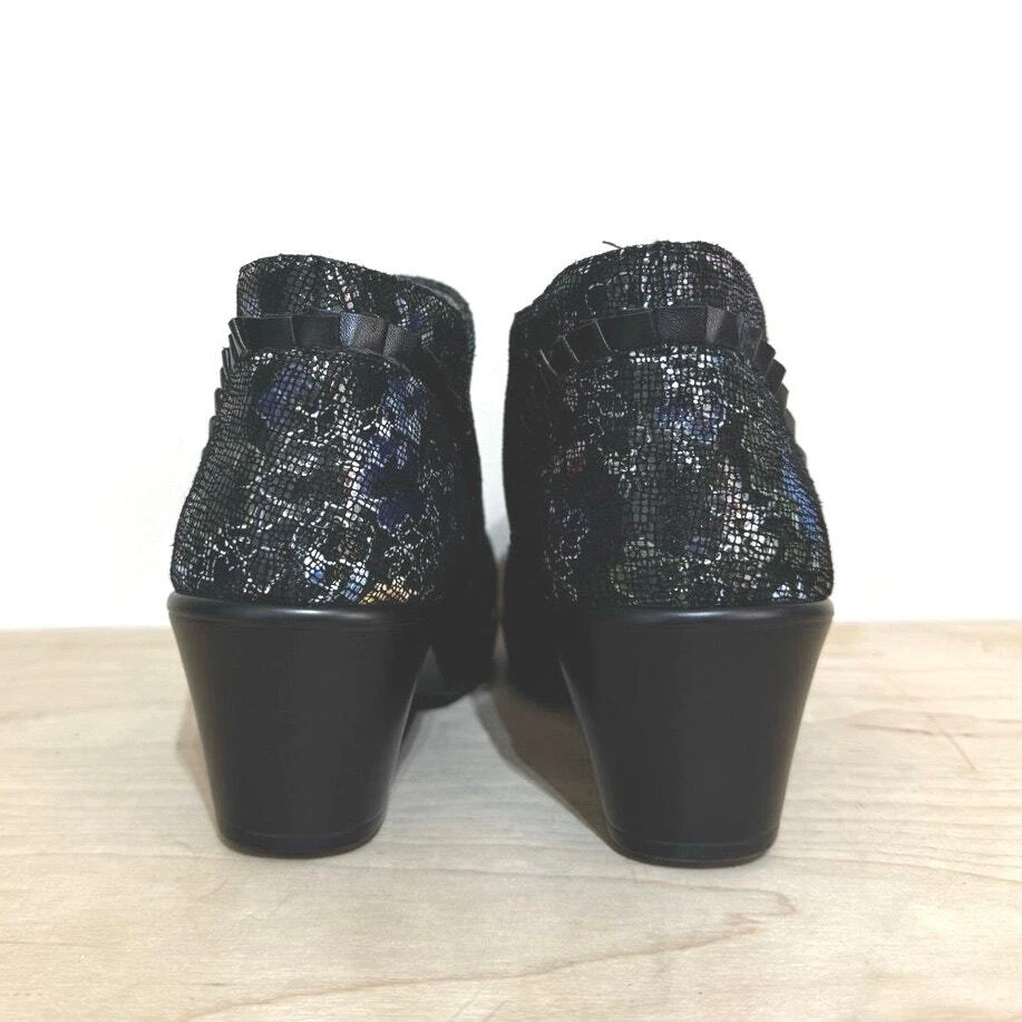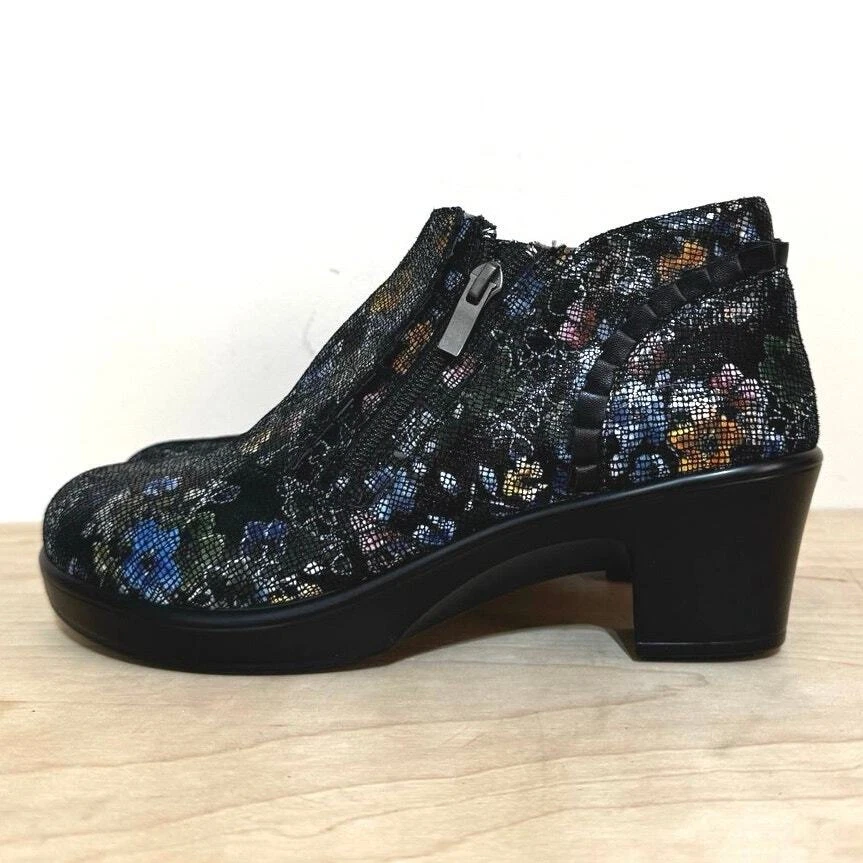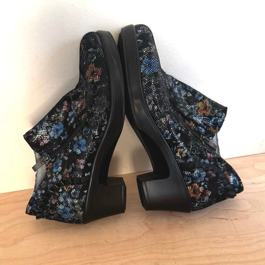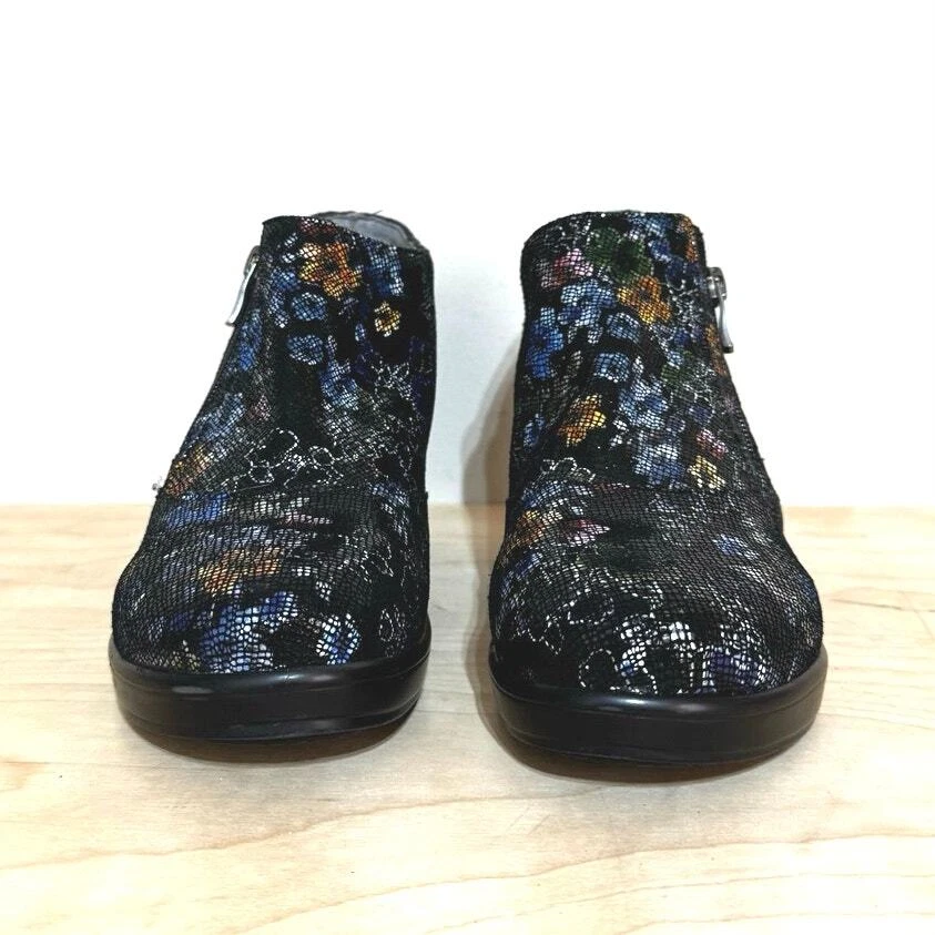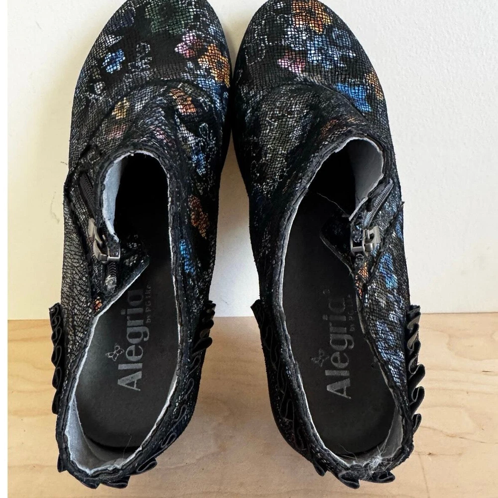 ALEGRIA Women’s Leather Floral PrintSide Zip Ankle Boots Size 38 US 8 Almond toe 2.5” Heel Polyurethane outsole Ruffle accent on sides only In great condition No stains, rips, or holes Shipped within one business day