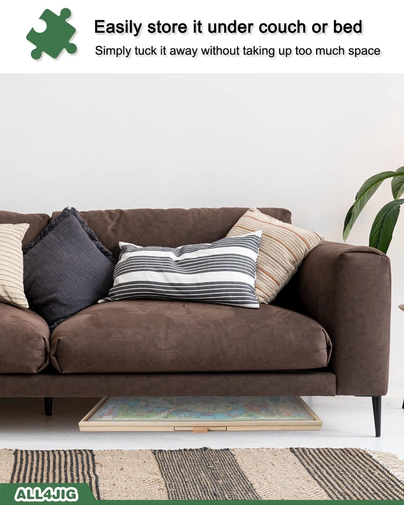 ALL4JIG 2000 Pieces Rotating Puzzle Board with 6 Drawers and Cover,29.6"x41.3"Portable Wooden Jigsaw Puzzle Table for Adults,Lazy Susan Spinning Puzzle Boards Birthday Gift for mom 【High Quality Puzzle Board】Our 2000Pcs most jigsaw puzzle board for puzzle storage is made of premium sustainable hardwood and good manufacturing, durable material ensure long-lasting usage, which is aim to provide the best puzzle table for everyone who love puzzles as we do! Smooth and non-slip surface offer a wonderful area for assembling your favorite jigsaw puzzles with your friends or families. 【6 Drawers & Protective COVER】6 SLIDING DRAWERS allow you to sort your pieces by color, theme or border. Keep them categorized while assembling your puzzle.Every drawer is specially designed with Handle, in order to ensure all the drawers are easy opening when using, safely keep the pieces from missing.Featuring a translucent cover to well guard your masterpiece from dust, water and your curious Dr.Cat until the next time you’d like to continue. 【Spinning LAZY SUSAN Design】An enjoyable and efficient way to assemble your jigsaw puzzles with our spinning puzzle table. Finding your pieces with ease,reaching to any section you need, Lazy Susan under create a wonderful swivel system for 360°smooth and steady rotation, triple funny puzzling interaction and strategic stimulation. 【5s Easy to Stow Away & Transport Puzzle】Easy lift, lightweight and balanced for quick storage.You can place your puzzle table onto any surface, countertops, coffee tables, beach blankets or even the floor.When you need an extra space for seating or dining,Just simply cover your puzzle with the puzzle cover,close the drawers and move it away under a couch or bed can your puzzle be well-stored and safely kept easily in a few seconds. 【Ideal Puzzle Gift for Puzzle Enthusiasts】A perfect birthday or holiday gift for teens, seniors or anyone who love puzzles, encourage quality interaction and strategic stimulation while putting together your favorite jigsaws.If sorting before solving is your guilty pleasure, stress no more! Add a puzzle spinner to your cart today! Shipping We offer FREE shipping on all orders! We use a selection of shipping services such as UPS, FedEx, USPS etc. We only ship to the lower 48 states, no APO/FPO addresses or PO Boxes allowed. Local pickups and combined shipping options are not provided at this time. Return You can return a product for up to 30 days from the date you purchased it. Any product you return must be in the same condition you received it and in the original packaging. Please keep the receipt. Payment We accept payment by any of the following methods: PayPal Please pay as soon as possible after winning an auction, as that will allow us to post your item to you sooner! Feedback Customer satisfaction is very important to us. If you have any problem with your order, please contact us and we will do our best to make you satisfied. Contact Us If you have any queries, please contact us via ebay. We usually respond within 24 hours on weekdays. Please visit our eBay store to check out other items for sale! Thank you for shopping at our store.