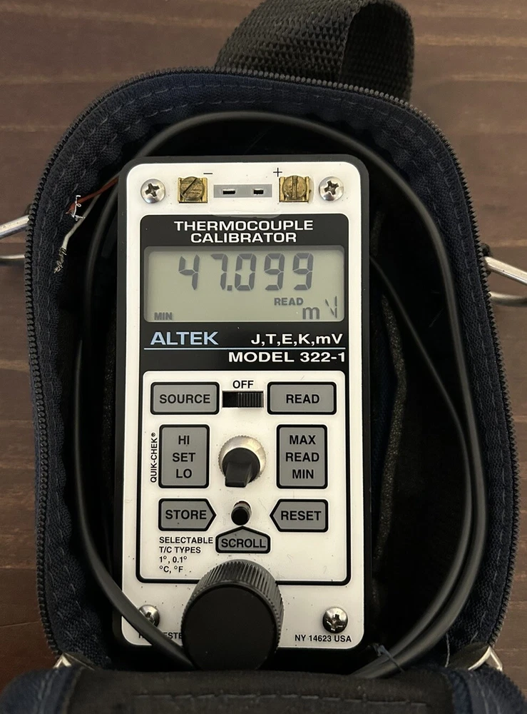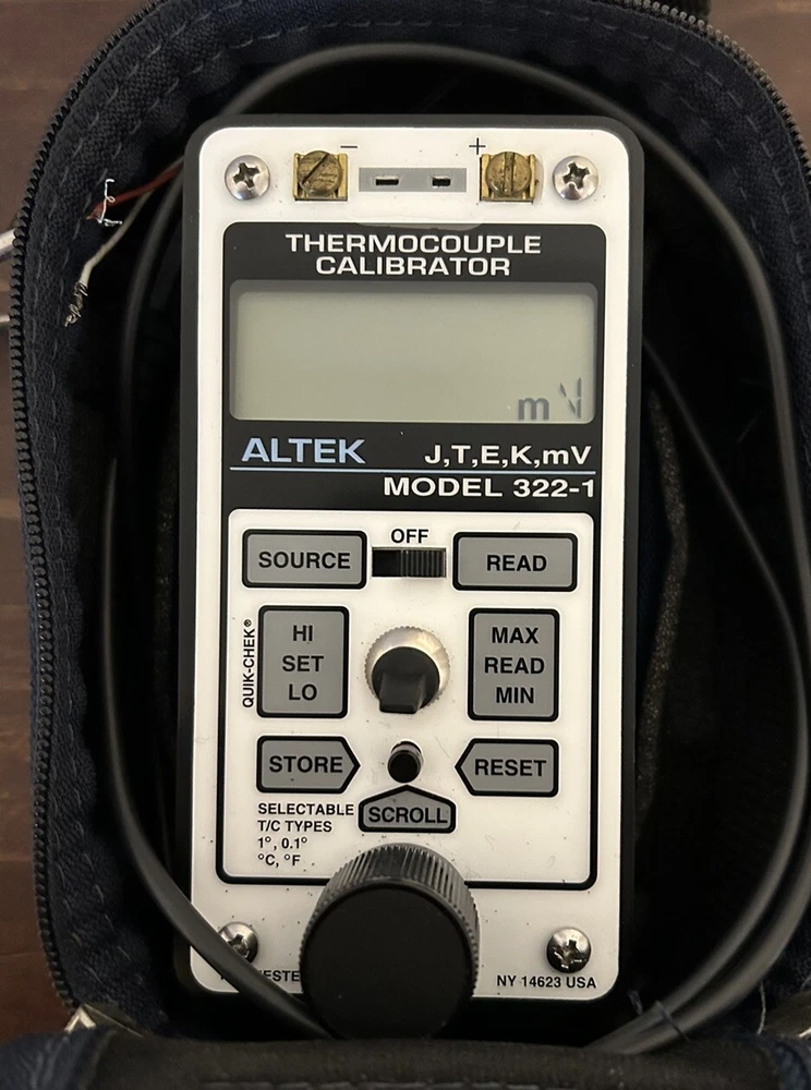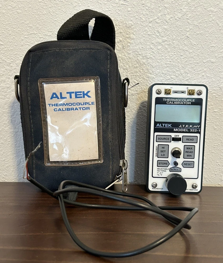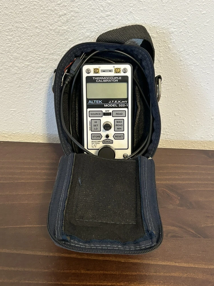 ALTEK 322-1 Thermocouple Calibrator W/ Bag & Cables Used item in good working condition. Sold as pictured. Includes calibrator, 4 sets of cables and bag. (No battery will be sent in unit ).