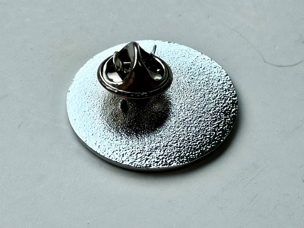 AMC AM Logo Lapel Pin. The Pins are about 1 1/4 inch and a heavier weight, which adds to the feel of richness that customers will enjoy with this pin type. The design is stamped into a metal base before color enamel is injected into recessed areas to create a full-color display. Each individual pin is carefully inspected and hand-polished before being individually packaged and shipped as your order.