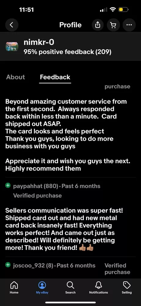 We Can Convert Your Card To This Metal Card And It Will Work Regularly With Chip and Magnetic Stripe Shipped From Los Angeles, CA US Shipping Great Online Customer Service Great Communication Response in 1 hr Floral Card Debt Credit Card You can have any type card and still buy this. We Offer Chip and Magnetic Stripe Replacement From Your Plastic Card To Metal The Metal Card is Personalized According for you, Name Card Numbers CCV Expiration Date Laser Engraved Chip and Magnetic Stripe Guaranteed To Work (if you choose to ship us your card) You can choose to Send Us Your Card For Full Service, or Receive the Personalized Metal card and replace the chip yourself( We Require you To Block The Card Before Shipping it to Us) Quality Product , Great Customer Service Guaranteed 24/7 available to contact Free Two Way Shipping Plastic Card To Metal Services Personalize your card with the following details and services. Please provide the information after your purchase: 1. CID Number: 4 digits 2. Account Number: 15 digits 3. Membership Year: 2 digits 4. Valid Thru: MM/YY 5. Holder Name: Up to 18 characters 6. CVV: 3 digits This is the option to transfer the chip and magnetic stripe from your original card to this customized black card. Instructions for Buyers: • Provide your customization details via message immediately after your purchase. • If no customization details are received within 1 business day after purchase, the information on the card will be randomized. • If you opt for chip and magnetic stripe swapping, ensure your original card is ready to be shipped via a trackable service and note that this service will affect the original card’s physical condition Turnaround Time: Our service turnaround is same business day following the receiving of your original card. Product Details: • Material: Premium 304 stainless steel (Note: This is not an alloy card) • Dimensions: 85.5 x 54 mm • Weight: 26 grams • Thickness: 0.8 mm DISCLAIMER: This card is intended for collection or novelty use only. It does not possess any financial functionality and is not affiliated with any banking or credit institutions. Make sure to tailor any instructions or terms according to your specific needs and the services you offer Items ready to Ship With No Customization Required Will Be Shipped Within Same Or Next Day. Item Requiring Customization will Be Shipped Within 1-3 Days. Items Requiring Buyer To Ship Their Own Product for Customization Conversion Will Be Shipped Same Day We Receive Buyers Product In Mail.