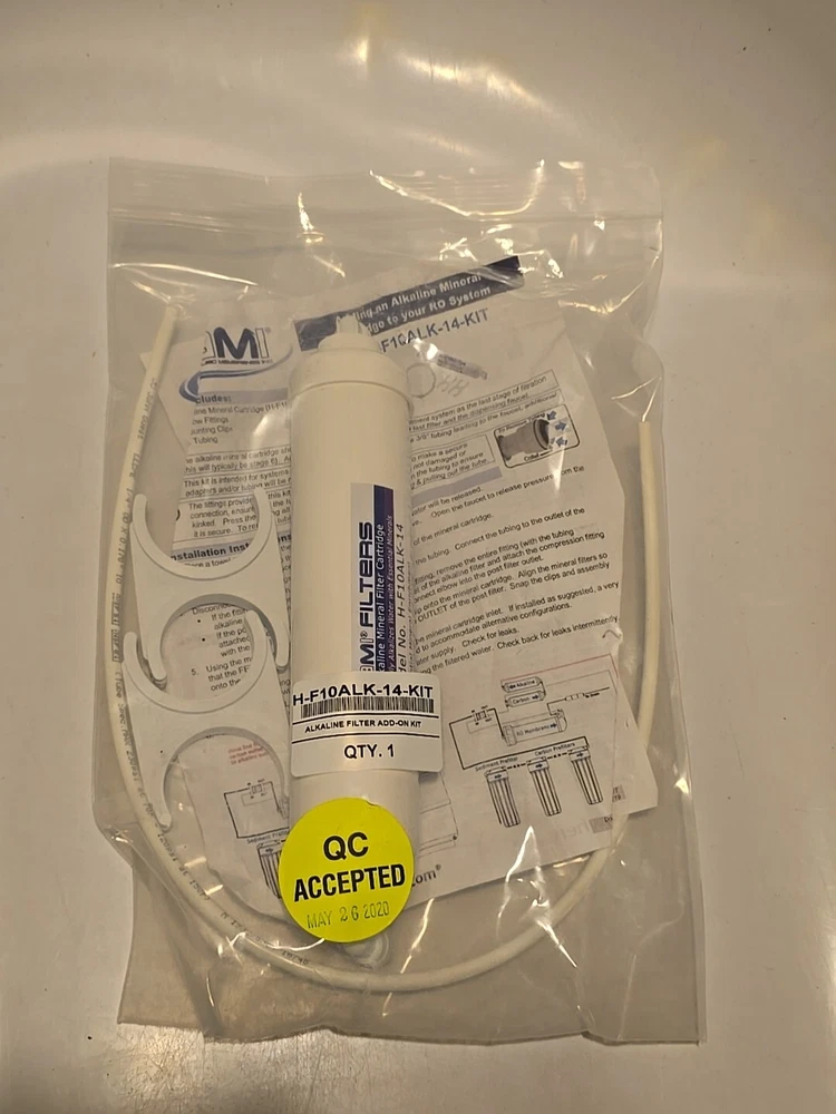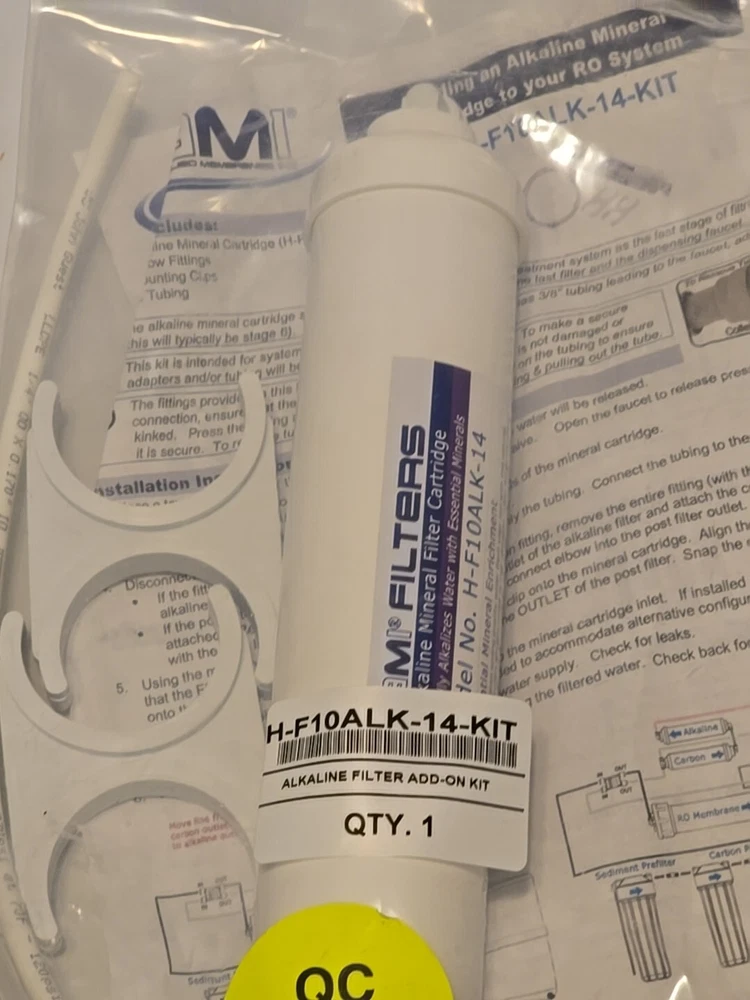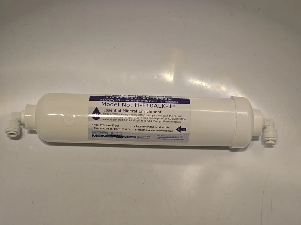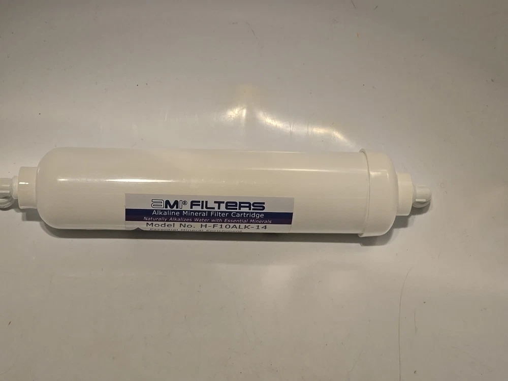 AMI FILTERS Alkaline Mineral Filter Cartridge H-F110ALK-14 NEW. SEE PICTURES AS PART OF DESCRIPTION. WHAT YOU SEE IS WHAT YOU WILL RECEIVE. LOCATION BACK ROOM BLACK SHELF.
