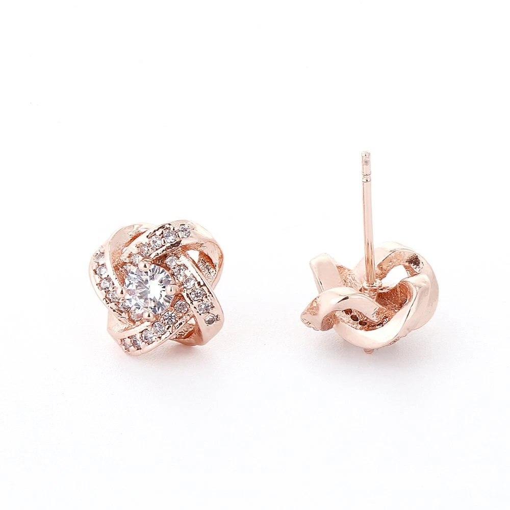 AMYJANE Bridal Jewelry Set for Women - Crystal Cubic Zirconia Love Knot Necklace Stud Earrings Elegant CZ Jewelry Set for Wedding Bride Bridesmaids Gift Set Product Details Color: Clear(14k Rose Gold Plated) Brand: AMYJANE MPN: JS Love Knot rose gold UPC: Does not apply EAN: Does not apply Is Discontinued By Manufacturer : No Department : womens Date First Available : January 14, 2018 Manufacturer : AMYJANE Brand, Seller, or Collection Name: AMYJANE Metal stamp: 14k Metal: Copper Material: Crystal Gem Type: Cubic Zirconia Setting: Prong-Setting Item Length: 3 inches Chain: Box Clasp: Lobster Clasp Resizable: No Number of stones: 5 Model number: JS Love Knot rose gold