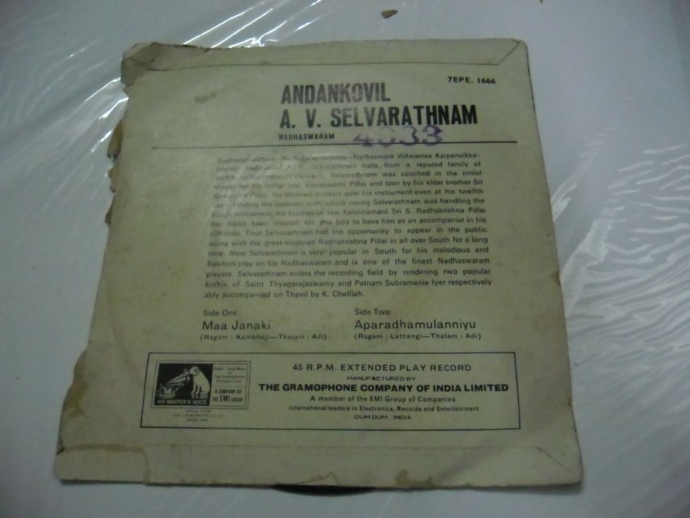 DEAR SIR WE WARMLY WELCOME YOU TO OUR STORE ! WE HAVE A GREAT COLLECTION OF BOLLYWOOD/INDIAN BOOKS / PRESSBOOKS/LOBBY CARDS/VINYL RECORDS/POSTERS AND MANY OTHER MEMORABILIA. PLEASE TAKE OUT SOME TIME TO GO THROUGH OUR ITEMS. WE WILL BE GLAD TO SERVE YOU!! IT IS YOU WHO HAS MADE US WHAT WE ARE TODAY. THANK YOU !! THANK YOU !! THANK YOU !! VERY RARE BOLLYWOOD/INDIA EP RECORD 45 rpm PLEASE NOTE THIS IS NOT A MUSIC /AUDIO CD LIMITED PERIOD AUCTION BID NOW !! IF YOU HAVE A SERIOUS OFFER PLEASE LET ME KNOW YOU MIGHT GET SOME GREAT GEMS OF YESTERYEARS ! PLEASE HAVE A LOOK AT MY STORE FOR MORE ITEMS RECORD CONDITION - As mentioned at the end in the title Eg.VG+ or VG or EX (Pls see grading terminology below) SLEEVE CONDITION - As per picture else a white paper sleeve will be provided. Also please note that there might be seam-splits not visible in the picture. BASED ON VISUAL GRADING - I HAVE NOT PLAY TESTED IT, SO IT IS A BIT SUBJECTIVE GRADING TERMINOLOGY: (PLEASE READ CAREFULLY BEFORE BIDDING) ALSO YOU CAN ASK US FOR ANY DOUBTS M- MINT Absolutely perfect in every way NM - NEAR MINT A nearly perfect record EX - EXCELLENT Amazing condition but not MINT VG++ Better than VG+ but below EX VG+ A Very Good Plus record will show some signs that it was played and otherwise handled by a previous owner who took good care of it. Record surfaces may show some signs of wear and may have slight scuffs or very light scratches that don't affect one's listening experiences. Slight warps that do not affect the sound are "OK". VG Many of the defects found in a VG+ record will be more pronounced in a VG disc. Surface noise will be evident upon playing, especially in soft passages and during a song's intro and fade, but will not overpower the music otherwise. Groove wear will start to be noticeable, as with light scratches (deep enough to feel with a fingernail) that will affect the sound. VG- It will have significant surface noise and scratches and visible groove wear May be badly warped, and won't play through without skipping or repeating.Just for collector sake & not for listening pleasure PLEASE SEE THE PICTURE FOR MORE INFORMATION PLEASE FEEL FREE TO ASK ANY QUESTIONS WORLDWIDE SHIPPING PAYPAL ACCEPTED Customer Satisfaction is our goal and we want you to be happy with your purchase. We strive to earn our 5 Star Detailed Seller Ratings and no less. Please email us before leaving negative or neutral feedback if you are in any way unhappy with your order and a response will be provided immediately. We offer complete refund/ replacement or exchange . If you have any questions/doubts please feel free to ask us. Powered by eBay Turbo Lister The free listing tool. List your items fast and easy and manage your active items.