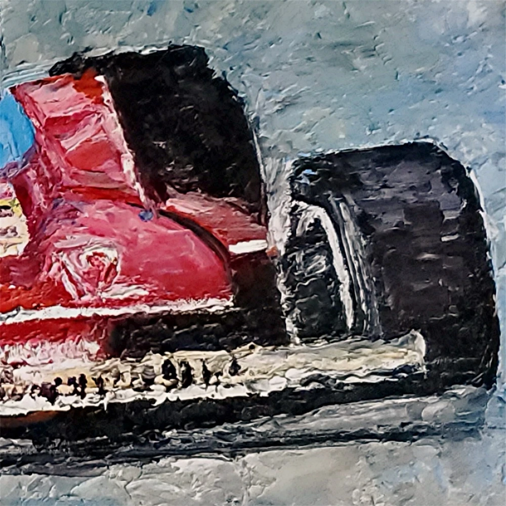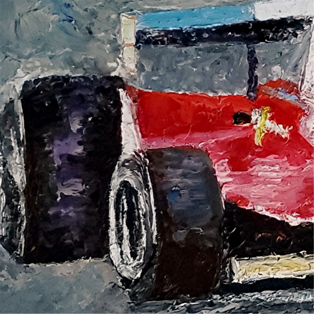 Capturing the essence of speed and nostalgia, Andre Dluhos's original oil painting, "Villeneuve," is a homage to the vintage race car era of Formula 1. Measuring an impressive 18 inches in height and 24 inches in width, this large canvas is a one-of-a-kind piece that brings the thrill of the racetrack to your collection. The artwork is wonderfully painted on canvas with the highest quality oil paints, ensuring lasting vibrancy and texture. This piece is steeped in the culture of Western art, embodying a contemporary style that nods to both realism and impressionism. It is a proud representation of American craftsmanship, signed by the artist himself, and comes with a Certificate of Authenticity to assure its originality. "Villeneuve" is unframed, allowing the new owner the freedom to choose the perfect frame that complements their space. Original oil painting titled " Villeneuve " SIZE 18" x 24" COA issued and included. Painting is on stretched canvas, fully varnished and ready to frame. Signed, dated, and titled on back of painting. Schooled in the fine art academies of Europe, and nearly 70 years of professional artist experience, Andre presents a bold, palette knife style with heavy texture and a decidedly modern take on the impressionist style. Buy directly from the studio and invest in a timeless piece of fine art. Collectors from all over the world own Andre's artworks. From corporate and public spaces, to private collections and home decor, Andre's work is renowned globally. Whether for yourself or as a present for someone special, a painting is a timeless gift that will serve as a memory for a lifetime. jan 31, 2025 .