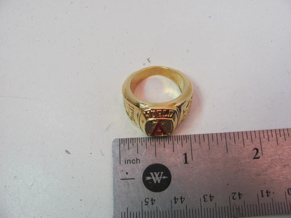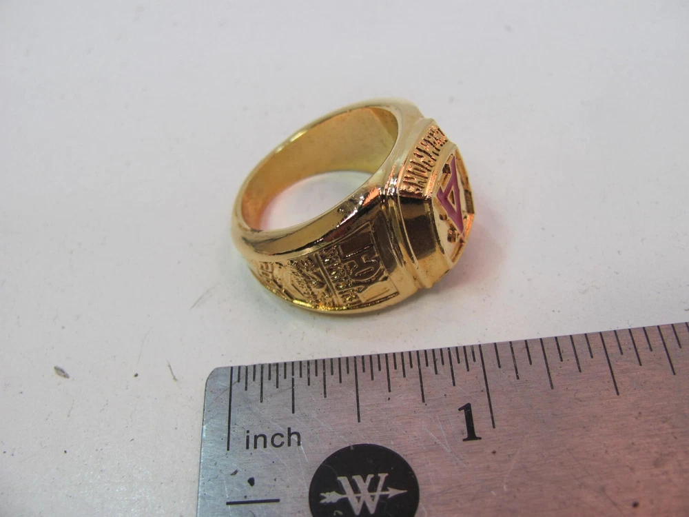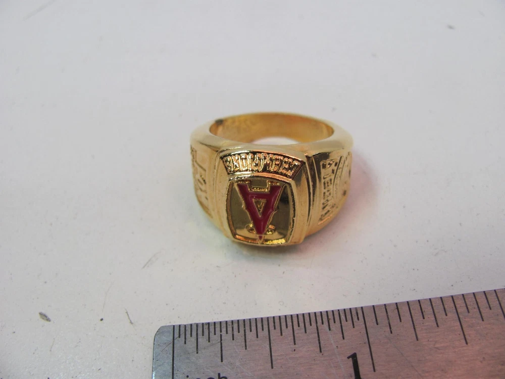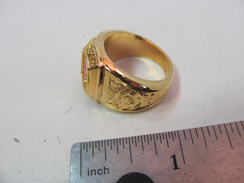 Seller Notes: “GOOD CONDITION. MINIMAL WEAR AS SHOWN” Occasion: Wedding, Birthday, Christmas, Anniversary, Christening, Valentine's Day, Graduation, Father's Day, Engagement, Confirmation/Communion Type: Ring gtin13: Does not apply Brand: Unsigned Designer Shape: Band Vintage: No Signed: No Antique: No Color: Gold, Red Ring Size: 9 Seller Warranty: No Metal: Gold Plated UPC: Does not apply Theme: Sports, Baseball, World Series Championship