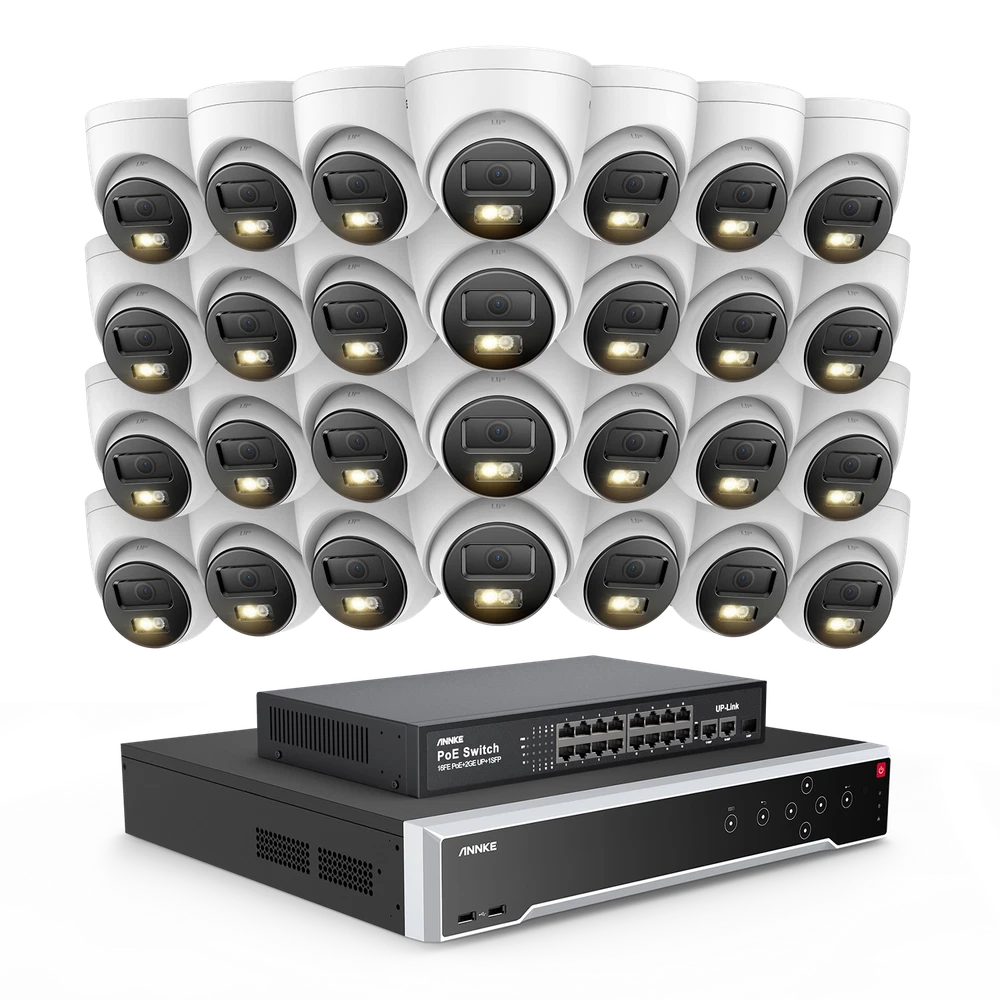 ebay2023 ANNKE H1200 32CH 12MP Smart Color Night PoE Bullet Security Camera System Multi-functional 12MP Surveillance Amazing 12MP Crisp Quality 12MP resolution with the 1/2.7" progressive scan BSI CMOS image sensor, not only delivers crisp quality with finer details but outputs 4096*3072 image scales to match the screen better, not distorted. Upgraded Human & Vehicle Detection Motion detection 2.0 adapts deep learning algorithms, which can detect and extract key objects like humans and vehicles quickly, minimizing APP false alarms pushes. Hi-Fi Audio Recording & Noise-Cancelling The cameras capture images and reveal the whole view of the given area. The built-in mic helps record videos with voice information, achieving high-fidelity noise-cancelling and increasing security coverage further. From Black & White to Color Night Vision With the default IR night vision, human&vehicle triggered, white light on and turns the vision into color; color night vision and IR night vision mode can switch each other. (100ft IR & color night vision distance) Expandable 32 Security Cameras The remarkably powerful internet video recording can connect 32 security cameras, it has built-in 16 PoE ports so that you can link to 16 cameras directly. If you want to connect another 16 cameras, you need to add a PoE switch (not included). Multiple Storage Options You can record videos with the inserted TF card slot, up to 512GB (not included) or with the NVR which built-in 4 SATA interface (support up to 12TB for each HDD, maximum 40TB capacity) for local storage, no monthly cloud storage fees. SD Card: Supported Up to 512GB Micro SD Card (Not Included) HDD: Supported Up to 48TB Hard Disk Drives (HDD Not Included) Real-time Motion Detection You can customize motion detection in every camera, you will get the app alarm notification and email alert with screenshots if there is detected motion, enhancing your security further. EmaiI: Email alert with on-scene snapshots. App: lnstant push notifications right on your mobile device. Optional Recording & Playback With the default 24/7 no-stop and auto-circulate override video recording, you can set up the motion detection recording or schedule recording. As for the playback, instantly playback, smart playback and event playback(motion detection, privacy mask, video loss/masking ) are all supported, you can choose any one of them. Customized Surveillance Areas & Privacy Mask You can customize monitor detection for specific surveillance areas, like garages, and yards. Once motion events are detected in customized zones, you will receive alerts instantly. You can set a privacy mask, then the mask area will be ignored when recording. IP67 & High-Low Temperature Resistance Rated IP67 weatherproof and the cameras are built to brave all weather. No matter torrential downpours and furious wind, or extreme temperatures as high as 140 °F & as low as -22°F. Besides, the camera can work in 1m water for 30 minutes. 120 dB True WDR & 3D DNR The 120 dB true WDR can be used in various scenes, which is not overexposed to darkness but balanced in brightness. Whether it's a backlight or not, you can see it. 3D DNR not only filters out image noise but provides a cleaner image with finer details and clearer night vision. Advanced H.265+ Video Format H.265+ saves up to 75% storage spaces compared with H.264 coding, which not only records ultra-long videos but spreads it faster. 24/7 Video Recording Even Without Internet The PoE security camera system can still work and continue to 24/7 no-stop video recording even without the network. But if you want to perform remote access with smartphones, tablets and laptops, you need to link the internet. NVR Video & Audio Video Compression H.265+/H.265/H.264+/H.264/MPEG4 IP Video Input 32 Channel (Include 16 Channel PoE) Video Output HDMI 1 up to 4K, HDMI 2/VGA up to 1080p, CVBS Audio Input/Output 1/1 RCA Video output mode HDMI1/VGA simultaneous output, HDMI2/VGA independent output Incoming/outgoing Bandwidth 256/256 Mbps Max Playback Capacity 2CH @12MP (20 fps)/4CH @8MP (25 fps)8-ch @ 4MP (30 fps)/16-ch @ 1080p (30 fps) Deep learning 32-ch Human and vehicle targets detection(Need IP camera support) IP video input 32 MP/24 MP/12 MP/8 MP/6 MP/5 MP/4 MP/3MP/1080p/720P *:After ultra HD resolution mode is enabled, the NVR supports up to 4-ch 32 MP/24 MP IP video inputs. Max Playback Channel 16CH Dual stream recording Support Network protocol TCP/IP, DHCP, IPv4, IPv6, DNS, DDNS, NTP, RTSP, SADP, SMTP, SNMP, NFS, iSCSI, ISUP, UPnP™, HTTP, HTTPS Smart Event Line crossing detection, intrusion detection, region entrance detection, region exiting detection, heat map, ANPR, and people counting(Need IP camera support) Hard Drive HDD 4 SATA Interface HDD Capacity Up to 10 TB Capacity for Each HDD(40 TB total) External Interface Network Interface 1, RJ-45 10/100/1000 Mbps self-adaptive Ethernet interface PoE 16, RJ-45 10/100 Mbps self-adaptive Ethernet interface USB Front Panel: 2X USB 2.0; Rear Panel: 1X USB 3.0 Serial Interface 1 RS-485 (Half-Duplex), 1 RS-232 Alarm Input/Output 16/4 General Operating Power 100-240V Power Consumption ≤ 20 W(without HDD and PoE off) Working Temperature 14 °F — 131 °F/-10 °C — +55 °C Dimensions (W X H X D) 440 × 387 × 75 mm ( 17.3"× 15.2" × 3.0") Weight (Without Hard Disk) ≤11 lbs. (5 kg) Camera Camera Image Sensor 1/2.7" Progressive Scan CMOS Video Compression Main stream: H.265+/H.265/H.264+/H.264 Sub-stream: H.265/H.264/MJPEG Max resolution 4096*3072(12MP) Audio Compression G.711ulaw/G.711alaw/G.722.1/G.726/MP2L2/PCM/AAC-LC Main Stream 50 Hz: 10 fps@4096*3072, 12.5 fps@(3840*2160, 3200*1800, 2688*1520, 1920*1080, 1280*720) 60 Hz: 10 fps@4096*3072, 15 fps@(3840*2160, 3200*1800, 2688*1520, 1920*1080, 1280*720) Sub Stream 50 Hz: 12.5 fps (1280*720, 640*480, 640*360) 60 Hz: 15 fps (1280*720, 640*480, 640*360) Video Bitrate 32 Kbps ~ 16 Mbps Lens 2.8 mm Audio Input Built-in Microphone, record with audio Angle of Vie