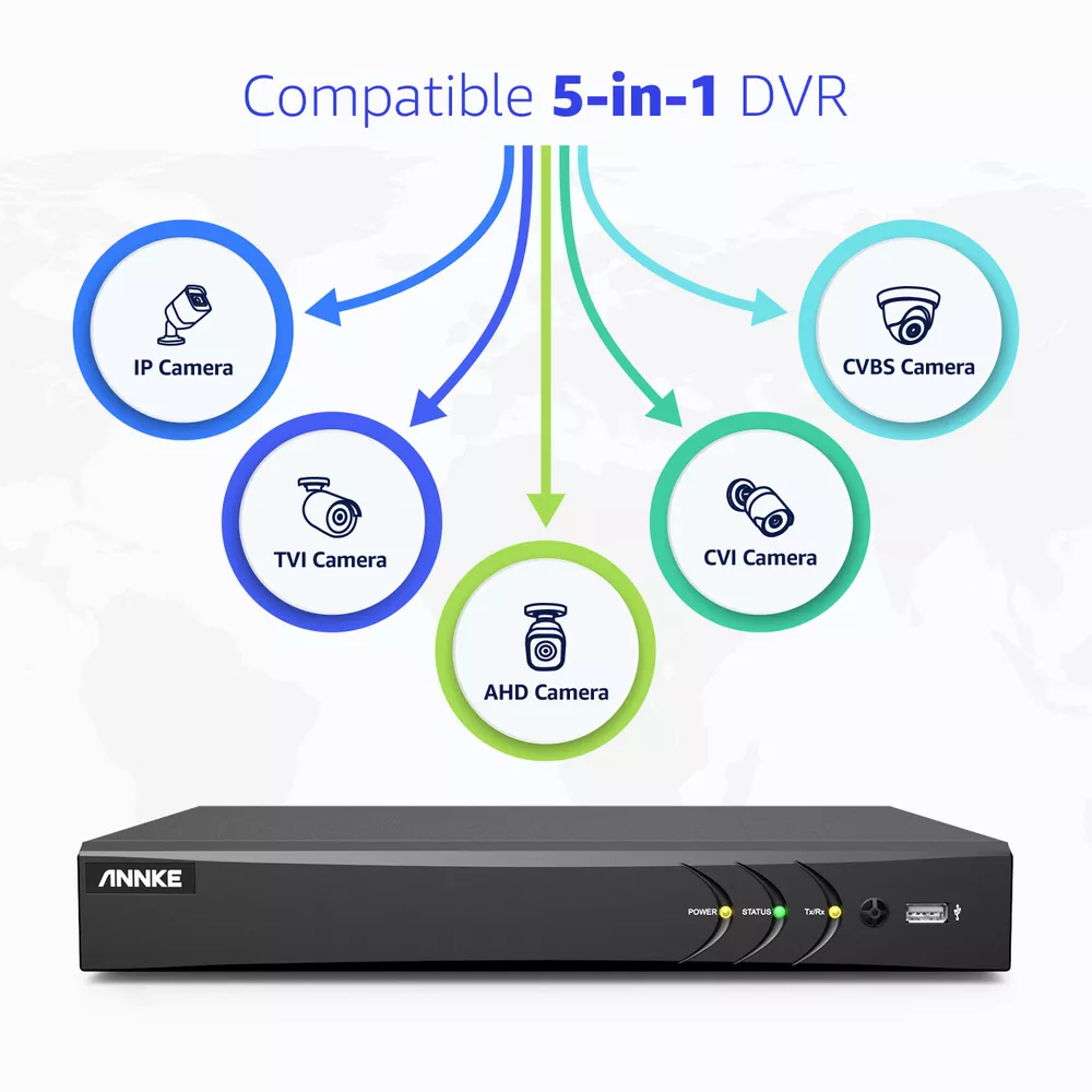 ANNKE Home Surveillance 1080P TVI Camera System 5MP TVI Camera System 4K TVI Camera System 5MP POE Camera System 4K POE Camera System 12MP POE Security Camera Kits Wireless IP Camera System SANNCE Home Surveillance 1080P TVI Camera System 1080P ColorVu Camera System 5MP TVI Security Camera System 3MP POE Camera System 5MP POE Camera System 8MP POE Camera System Wireless Camera System CCTV Camera DVR/NVR CCTV Accessories POE IP Security Cameras ebay2023 ANNKE ANNKE 4K Ultra HD 8-CH Security DVR Recorder Secure Your Home Day & Night Brilliant 4K Ultra HD With Finer Details This digital video recorder delivers the sharpest true 4K ultra HD videos with the finest details, so you can monitor your home or business in greater detail than ever before day/night. Upgraded Human & Vehicle Detection Adopting the leading-edge motion detection 2.0 algorithm, this DVR can extract and detect key objects like human&vehicle with up to 99% accuracy. Meanwhile, it also supports real-time APP notifications and email alert. Customized Detection Mode This DVR not only supports line crossing and intrusion detection, but also can set up to 4 programmable privacy areas. You can choose it freely according to your needs. Smart Search & Playback This DVR makes it easier for you to find what you want in loads of videos, you can search or playback vital clips like human/vehicle videos separately, which improves your search efficiency greatly. Powerful 5-in-1 Compatibility DVR The expandable DVR can work with all ANNKE cameras of TVI, AHD, CVI, CVBS and IP cameras, so that you can manage all cameras just in the sole device. (the DVR with default 4 IP cameras, maximizes support up to 12 IP cameras) Multiple Video Recording Options There are various recording options for your needs, like 24/7 no-stop and auto-circulate override recording, scheduled recording and motion detection recording, you can customize your video recording ways. Remote Access Access the DVR remotely with the free ANNKE Client & App or a browser via your smartphones, tablets, computers wherever. So it's a good way for you to monitor your property in ultra HD stream no matter where you are. Work With Alexa This DVR can work with Amazon Alexa, allowing voice control to access the system. You can receive live feed via 100% hands-free control even if no smartphones or laptops. Coaxial Audio is Supported Coaxial audio camera access is synchronized with the same cable to transmit video signals and audio signals, no need for additional audio cables. Advanced H.265+ Video Format H.265+ saves up to 75% storage spaces compared with H.264 coding, which not only records ultra-long videos but spreads it faster. Support HDMI/VGA Output This DVR supports HDMI outputs with up to 4K ultra HD videos, VGA transmits up to 1080p clarity, assuring you have a beautiful vision experience. Various Storage Options for Your Needs There are kinds of storage ways for you to choose from, the DVR not only supports one up to one 10TB HDD and cloud storage, but also supports NAS and IP SAN storage, so you can achieve storage hassle-free easily and no need to worry about storage anymore. 8CH DVR Video & Audio Video Compression H.265 Pro+/H.265 Pro/H.265/H.264+/H.264 Video Input 8CH Analog HD/Analog + 4CH (up to 12-ch) IP (Enhanced IP mode on:8-ch (up to 16-ch), each up to 4 Mbps) Video Output VGA up to 1080p/60 Hz; HDMI up to 4K (3840 × 2160)/30 Hz Audio Input 1-ch, RCA (2.0 Vp-p, 1 KΩ)/8-ch via coaxial cable Video bitrate 32 Kbps to 10 Mbps Audio Output 1-ch, RCA (2.0 Vp-p, 1 KΩ) Smart event Line crossing & Intrusion Detection IPC Playback Resolution Up to 8MP IPC Recording Resolution Up to 8MP IP Camera Input 4-ch (up to 12-ch) Max Playback Channel 8CH ON-VIF Suppot Motion Detection 2.0 Deep learning-based motion detection 2.0 is enabled by default for all analog channels, it can classify human and vehicle, and extremely reduce false alarms caused by objects like leaves and lights. Analog HD Playback Resolution 4K@8 fps/5MP@12 fps/4MP@15 fps/3MP@18 fps 1080p/720p/WD1/4CIF/VGA/CIF@25 fps (P)/30 fps (N) Supported Analog Camera Types Support HD TVI Input: 8 MP@15 fps, 5 MP@20 fps, 3K@20 fps, 4 MP@30 fps, 4 MP@25 fps, 3 MP@18 fps, 1080p@30 fps, 1080p@25 fps, 720p@60 fps, 720p@50 fps, 720p@30 fps, 720p@25 fps Support AHD Input: 5 MP@20 fps, 4 MP@30 fps, 1080p@25 fps, 1080p@30 fps, 720p@25 fps, 720p@30 fps; Support HD CVI Input: 4 MP@30 fps, 4 MP@25 fps, 1080p@25 fps, 1080p@30 fps, 720p@25 fps, 720p@30 fps; Support CVBS Input:PAL/NTSC Hard Drive HDD 1 SATA Interface HDD Capacity Up to 10 TB Capacity(Not Include) External Interface USB USB 2.0 X1 + USB 3.0 X 1 Network Interface RJ45 X1(10/100 M/1000 M self-adaptive Ethernet interface) RS485 Support General Working Temperature '14 °F — 131 °F/-10 °C — 55 °C Dimensions (W X H X D) 315 × 242 × 45 mm (12.4 × 9.5 × 1.8 inch) Weight (Without Hard Disk) ≤ 2 kg (4.4 lbs.) (Without HDD)
