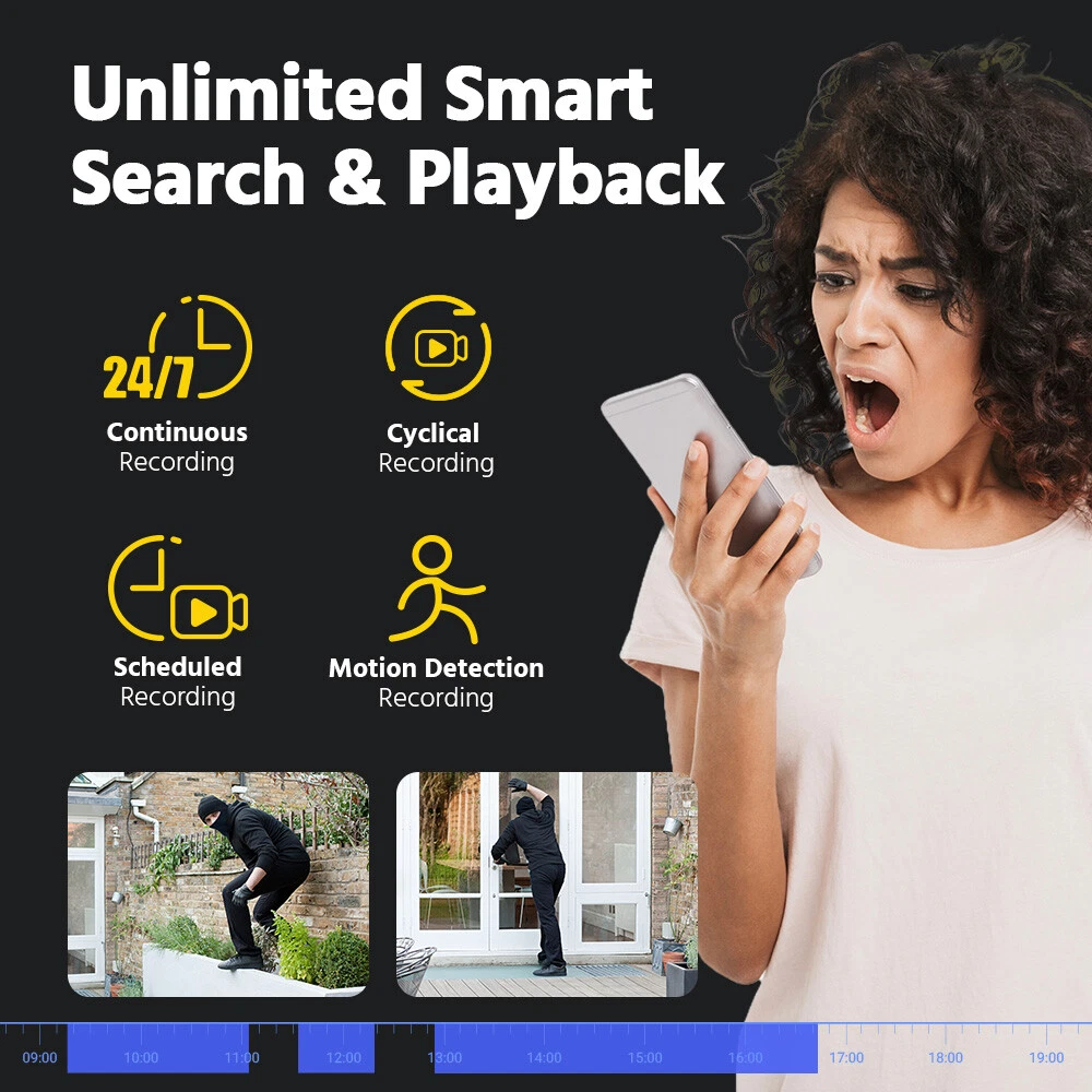 ANNKE Home Surveillance 1080P TVI Camera System 5MP TVI Camera System 4K TVI Camera System 5MP POE Camera System 4K POE Camera System 12MP POE Security Camera Kits Wireless IP Camera System SANNCE Home Surveillance 1080P TVI Camera System 1080P ColorVu Camera System 5MP TVI Security Camera System 3MP POE Camera System 5MP POE Camera System 8MP POE Camera System Wireless Camera System CCTV Camera DVR/NVR CCTV Accessories POE IP Security Cameras ebay2023 ANNKE H1200 8CH 12MP Smart Color Night PoE Bullet Security Camera System Multi-functional 12MP Surveillance Amazing 12MP Crisp Quality 12MP resolution with the 1/2.7" progressive scan BSI CMOS image sensor, not only delivers crisp quality with finer details but outputs 4096*3072 image scales to match the screen better, not distorted. Upgraded Human & Vehicle Detection Motion detection 2.0 adapts deep learning algorithms, which can detect and extract key objects like humans and vehicles quickly, minimizing APP false alarms pushes. Hi-Fi Audio Recording & Noise-Cancelling The cameras capture images and reveal the whole view of the given area. The built-in mic helps record videos with voice information, achieving high-fidelity noise-cancelling and increasing security coverage further. From Black & White to Colored Night Vision With the default IR night vision, human&vehicle triggered, white light on and turns the vision into color; IR night vision and color night vision mode can switch each other. (100ft IR & color night vision distance) Multiple Storage Options You can record videos with the inserted SD card slot, up to 512GB (not included), or with the NVR which built-in 1 SATA interface (maximum support 8TB capacity) for local storage, no monthly cloud storage fees. SD Card: SD Card: Supported UP to 512GB Micro SD Card (Not Included) HDD: Supported UP to 8TB Hard Disk Drives (HDD Not Included) Real-time Motion Detection You can customize motion detection area in every camera, instant app alarm notification push and email alerts will push to your phones once detect motion, enhancing your security. Email: Email alert with on-scene snapshots. APP: Instant push notifications right on your mobile device. Optional Recording and Untrammelled Smart Search & Playback With the defaulted 24/7 no-stop and auto-circulate override video recording, you can choose motion detection recording or schedule recording. For the playback, instantly playback, smart playback and event playback (motion detection, privacy mask, video loss/masking) are all supported. Of course, smart search makes it easier to find what you want in loads of videos. Customized Surveillance Areas & Privacy Mask You can customize monitor detection for specific surveillance areas, like yards, and garages. Once motion events happen in the customized areas, you will get alerts instantly. You can set up the privacy mask, then the camera will ignore the mask area when recording video. IP67 & High-Low Temperature Resistance Rated IP67 weatherproof and the cameras are built to brave all weather. No matter torrential downpours and furious wind, or extreme temperatures as high as 140 °F & as low as -22°F. Besides, the camera can work in 1m water for 30 minutes. 120 dB True WDR & 3D DNR The 120 dB true WDR can be used in various scenes, which is not overexposed to darkness but balanced in brightness. Whether it's a backlight or not, you can see it. 3D DNR not only filters out image noise but provides a cleaner image with finer details and clearer night vision. Advanced H.265+ Video Format H.265+ saves up to 75% storage spaces compared with H.264 coding, which not only records ultra-long videos but spreads it faster. 24/7 Recording Even Without Internet The PoE camera can provide 24/7 no-stop video recording even there is no network, if you want to perform remote access with smartphones, tablets and laptops, internet connection is required. NVR Video & Audio Video Compression H.264+/H.264/H.265/H.265+ IP Video Input 8CH PoE Video Output HDMI up to 4K (4096 × 2160), VGA up to 1080p(1920 × 1080) Audio Input/Output 1/1 RCA Incoming/Outgoing Bandwidth 80/80 M ONVIF Protocols Support Max Recording Resolution Up to 12MP(4096 X 3072)@30fps(Frame rate depends on IP camera) Max Playback Resolution Up to 12MP(4096 X 3072)@30fps(Frame rate depends on IP camera) Max Playback Channel 8CH Max Playback Capacity 1-ch@12 MP(4096 X 3072) (30 fps)/3-ch@4 MP (30 fps)/6-ch@1080p (30 fps) Hard Drive HDD 1 SATA Interface HDD Capacity Up to 8 TB Capacity External Interface Network Interface 1, RJ-45 10/100Mbps self-adaptive Ethernet interface PoE 8, RJ-45 10/100 Mbps self-adaptive Ethernet interface, IEEE 802.3 af/at USB interface USB 2.0*2 Smart Function Deep learning Human and vehicle targets detection(Need IP camera support) 4-ch Human and vehicle targets detection(IP camera does not need to support this function but the resolution cannot exceed 4MP) Smart Event Line crossing detection, intrusion detection, region entrance detection, region exiting detection (Need IP camera support) General Operating Power DC 48 V Power Consumption ≤10 W (Without HDD and PoE) Working Temperature '14 °F ~ 131 °F/-10 °C ~+55 °C PoE: Max. 25.5W for Single Port Dimensions (W X H X D) 12.4” X 9.4” X 1.9”/315 X 240 X 48 mm Weight (Without Hard Disk) 2.2 lbs/1 kg Camera Camera Image Sensor 1/2.7" Progressive Scan CMOS Video Compression Main stream: H.265+/H.265/H.264+/H.264 Sub-stream: H.265/H.264/MJPEG Max resolution 4096*3072(12MP) Audio Compression G.711ulaw/G.711alaw/G.722.1/G.726/MP2L2/PCM/AAC-LC Main Stream 50 Hz: 10 fps@4096*3072, 12.5 fps@(3840*2160, 3200*1800, 2688*1520, 1920*1080, 1280*720) 60 Hz: 10 fps@4096*3072, 15 fps@(3840*2160, 3200*1800, 2688*1520, 1920*1080, 1280*720) Sub Stream 50 Hz: 12.5 fps (1280*720, 640*480, 640*360) 60 Hz: 15 fps (1280*720, 640*480, 640*360) Video Bitrate 32 Kbps 锝?nbsp;16 Mbps Lens 2.8 mm Audio Input Built-in Microphone, record with audio Angle of View Horizontal FOV 113°, vertical 