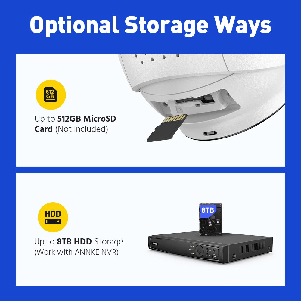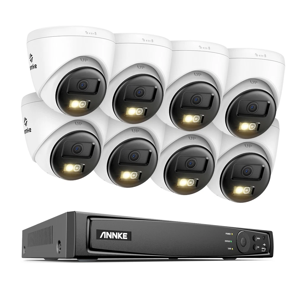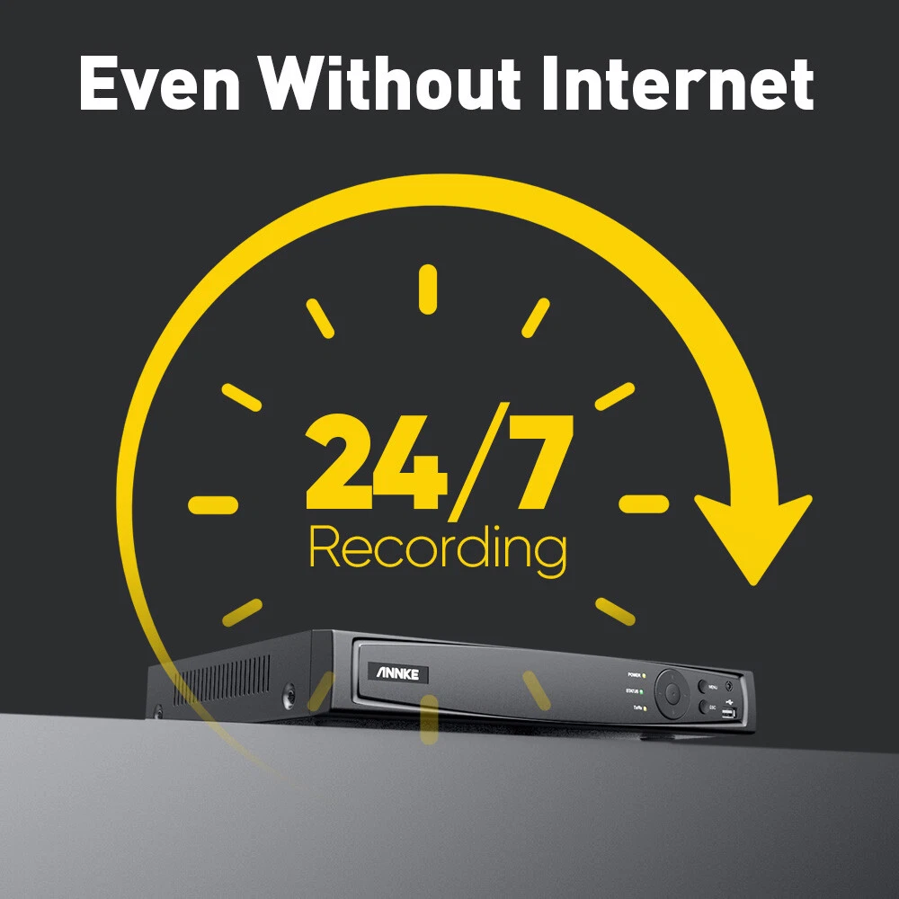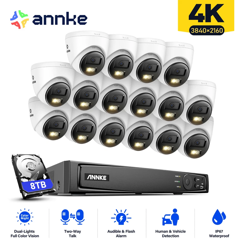 ANNKE Home Surveillance 1080P TVI Camera System 5MP TVI Camera System 4K TVI Camera System 5MP POE Camera System 4K POE Camera System 12MP POE Security Camera Kits Wireless IP Camera System SANNCE Home Surveillance 1080P TVI Camera System 1080P ColorVu Camera System 5MP TVI Security Camera System 3MP POE Camera System 5MP POE Camera System 8MP POE Camera System Wireless Camera System CCTV Camera DVR/NVR CCTV Accessories POE IP Security Cameras ebay2023 ANNKE HT800 4K Color Night PoE Security System With Two-Way Audio Improved 4K Sharpness. Flawless Details Best 4K Def. in 16:9 Image Scale The 1/2.4" progressive scan BSI CMOS image sensor delivers 4K resolution (3840*2160), not only bringing clarity image quality with finer details but a 16:9 image scale that is perfectly matched with the screen without distortion. Besides, the 4mm lens lets you experience clearer and closer visuals, never miss any details. Listen & Talk in Real Time This camera not only delivers 4K clarity images, but also can help you to communicate with your friends or family members by using the ANNKE App. By the way, it’s good for you to warn suspicious strangers when they’re loitering around your home. From Black & White to Colored Night With the default IR night vision, human&vehicle triggered and turned the vision into color. Remains color night vision even in dark environments, turns to B&W when less than 0.005Lux. Also supports IR night vision and color night vision mode switching. (100ft color night vision and 100ft IR night vision) Accurate Human & Vehicle Detection Motion Detection 2.0 recognizes and extracts key objects quickly like human beings and vehicles, reducing up to 99% of false alarms. Audible & Flash Alarm Audible and light alarms can be linked to event triggers and real-time alerts to prevent in advance, reduce losses; Audible alarms max for up to 95dB, 12 kinds of alarm sounds for you to choose from and you can also customize alarms like recording your voice as alarm sound; 3 modes of light flashing can be selected and adjust the time duration according to needs. Unlimited Smart Search&Playback For the playback, instant playback, ordinary playback or event smart playback are supported. And extra user-friendly functions like private recording setting, lost video finding and 4 CH line crossing detection are all ready for you. Locate vital videos in countable seconds. Never spend extra time finding what you need in loads of videos. Searching playback is much easier with updated Smart Playback tech. Customized Motion Areas & Privacy Mask You can always customize motion detection with specific motion zones, like doorsteps, garages. You will receive instant alerts only when motion events happen in the customized areas. To protect your privacy, you may set up the privacy mask. The system will ignore the masked zones when recording videos. Remote Viewing Anytime & Anywhere When the system detects any difference, it will push instant app notifications and email alerts to you, so that you can access the system to check the motion events and take actions to prevent possible intrusion with free ANNKE App. TF Card & NVR Storage Record videos onto the NVR (an HDD is needed for video record, built-in 2 SATA interfaces, support up to 2 8TB HDD for maximum 16 TB capacity) or onto a TF card up to 512 GB (not included) for local video storage without paying monthly cloud storage fees. 24/7 Recording Even Without Internet This PoE security camera system can provide 24/7 non-stop video recording even without Internet access. For remote access via smartphones, tablets or computers and motion alerts, Internet connection is required. 120 dB True WDR & 3D DNR The 120 dB true WDR automatically adjusts the brightest & darkest points of the videos, resulting in optimized & highly-detailed footages in the high-contrast lighting conditions. 3D DNR filters out digital noise to provide a cleaner and more accurate image in low-light scenes. Industry-Leading H.265+ Video Format Keep the exceptional 4K Ultra HD footages without the 4K file sizes thanks to the ANNKE's exclusive leading H.265+ video format. It recordes longer videos, a 80% increase in storage than H.264 coding, and provides smooth 4K stream without using all the data. Outdoor IP67 Weatherproof Rated as IP67 weatherproof, the camera continues to function even being immersed in 1 m of water for 30 minutes. It has been tested in the most frigid conditions, ensuring seamless performance in torrential downpours, freezing/broiling temperatures (-22 °F – 140 °F). NVR Video & Audio Video Compression H.264+/H.264/H.265/H.265+ IP Video Input 16CH PoE Video Output HDMI up to 4K, VGA up to 1080p Audio Input/Output 1/1 RCA Incoming/Outgoing Bandwidth 160/80 M ON-VIF Protocols Support Max Recording Resolution Up to 12MP(4096 X 3072) Max Playback Resolution Up to 12MP(4096 X 3072) Max Playback Channel 16CH Max Playback Capacity 1-ch@12 MP,3-ch@4 MP,6-ch@1080p Hard Drive HDD 2 SATA Interface HDD Capacity Up to 8 TB Capacity for each disk External Interface Network Interface RJ45 X1 (10/100/1000 M) PoE 16, RJ-45 10/100 Mbps self-adaptive Ethernet interface, IEEE 802.3 af/at USB 2X USB 2.0 Smart Function Deep learning 16-ch Human and vehicle targets detection(Need IP camera support) Smart Event Line crossing detection, intrusion detection, region entrance detection, region exiting detection(Need IP camera support) 4-ch Human and vehicle targets detection(IP camera does not need to support this function but the resolution cannot exceed 4MP) General Operating Power AC 100-240 V Power Consumption ≤15 W (Without HDD and PoE) Working Temperature 14 °F ~ 131 °F/-10 °C ~+55 °C PoE: Max 25.5 W for Single Port Dimensions (W X H X D) 15.2” X 12.4” X 2.0”/385 X 315 X 52 mm Weight (Without Hard Disk) 6.6 lbs./3 kg Camera Camera Image Sensor 1/2.4" Progressive Scan CMOS Video Compression Main stream: H.265+/H.265/H.264+/H.264 Sub-stream: H.265/H.264/MJPEG Sub Stream 50 Hz: 20 