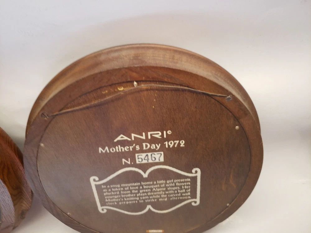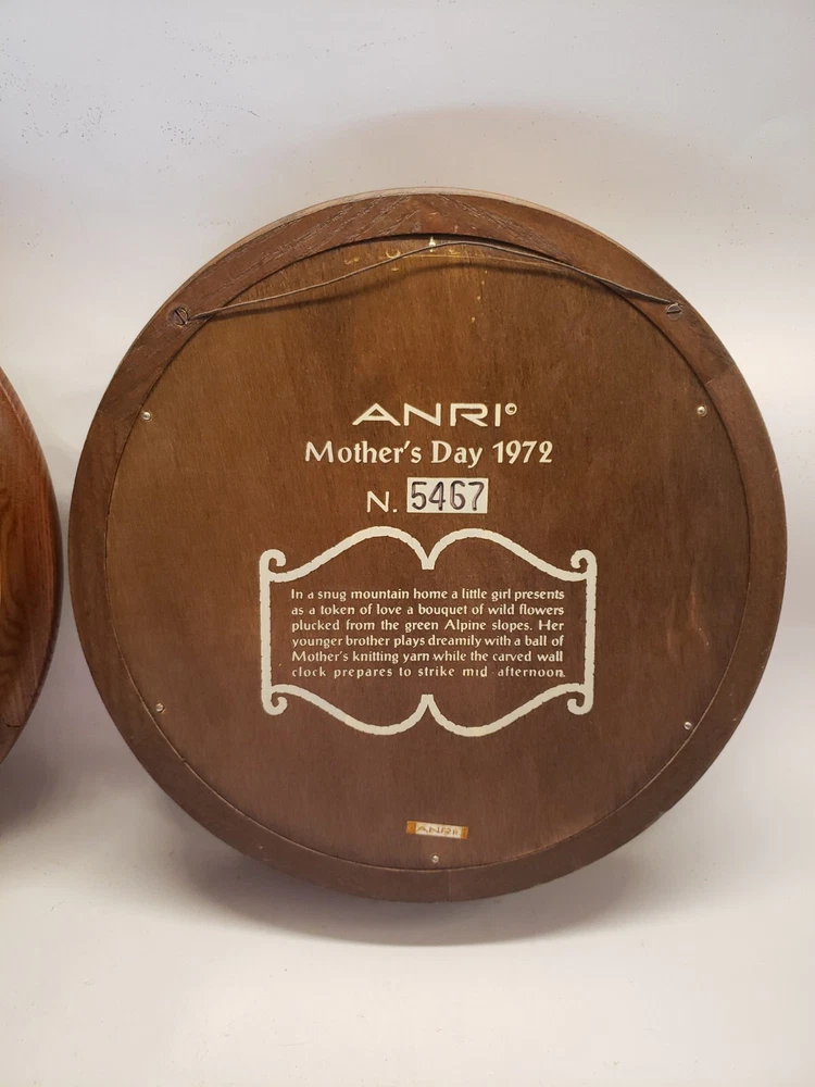Size:MediumFeatures:CarvingsSeller Notes:“minimal wear”Brand:ANRIStyle:1970sYear Manufactured:1972Signed:NoOriginal/Reproduction:OriginalTime Period Manufactured:1970-1979Occasion:Mother's DayCountry/Region of Manufacture:ItalyMaterial:WoodSuitable For:WallType:Wood CarvingEra:Late 20th Century (1970-1999)