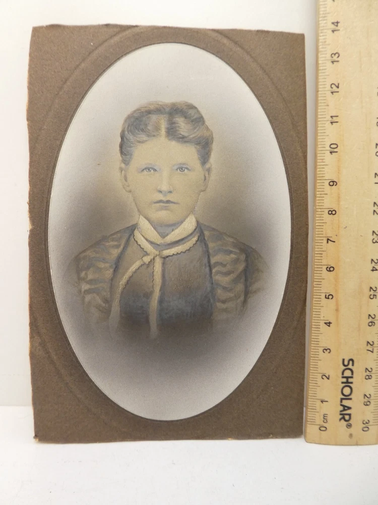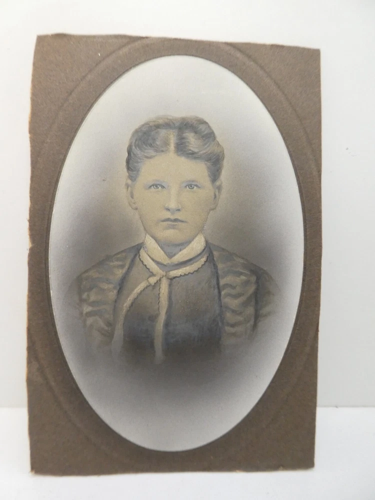ANTIQUE BLACK WHITE PHOTO PORTRAIT OF LADY HAND PAINTED ON MOUNT CARD BOARD PHOTO IS IN GOOD CONDITION MEASURES 10 CM x 15.5 CM I AM LISTING SOME OTHER PIECES I can combine for postage. CHECK MY OTHER LISTINGS FOR MORE