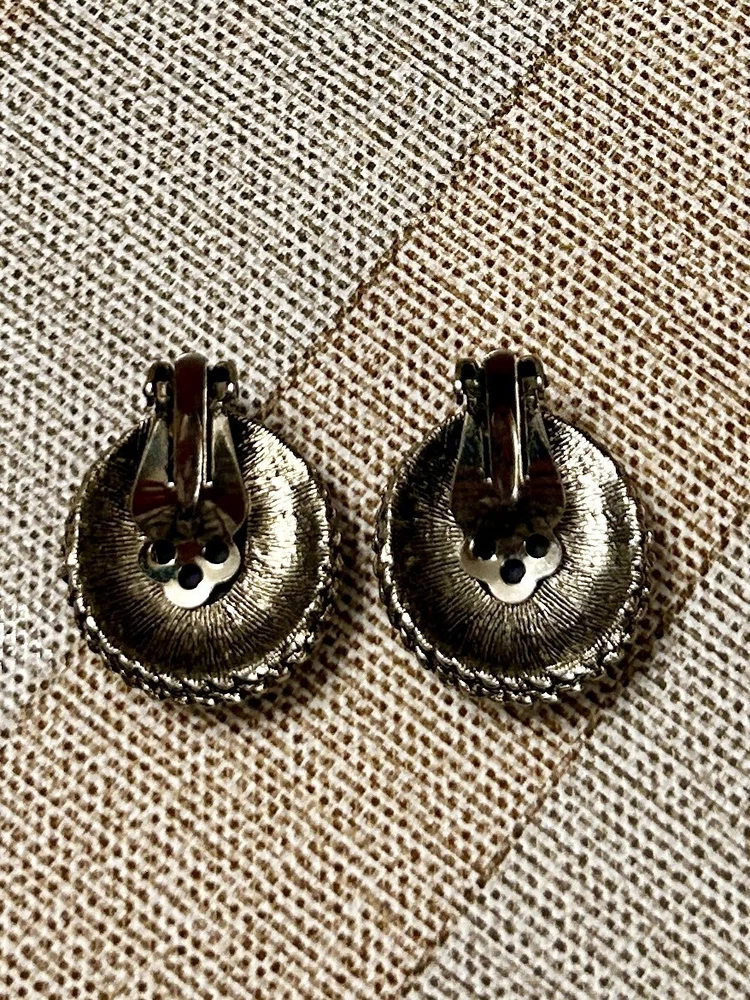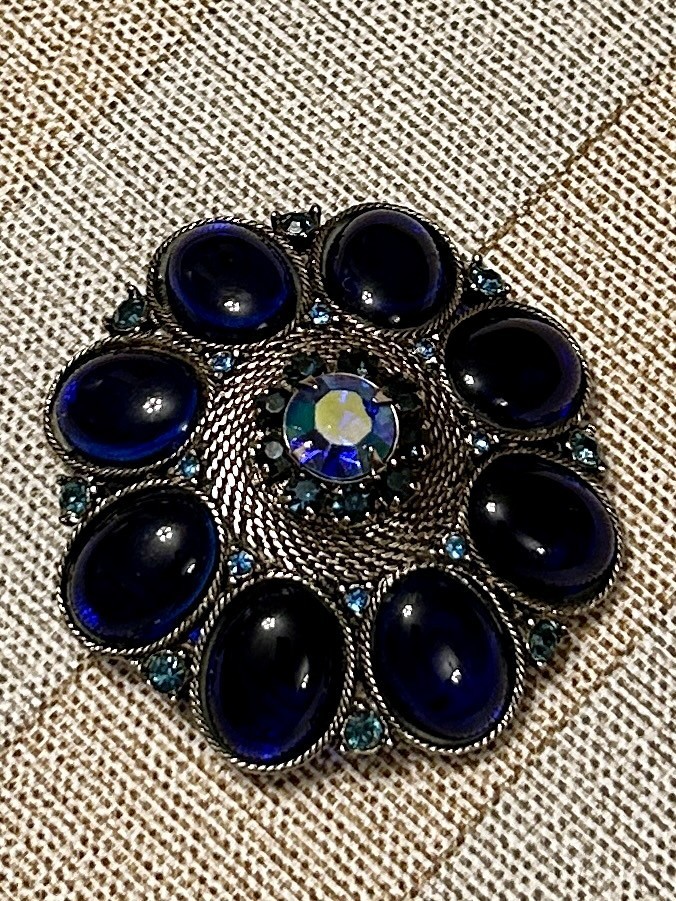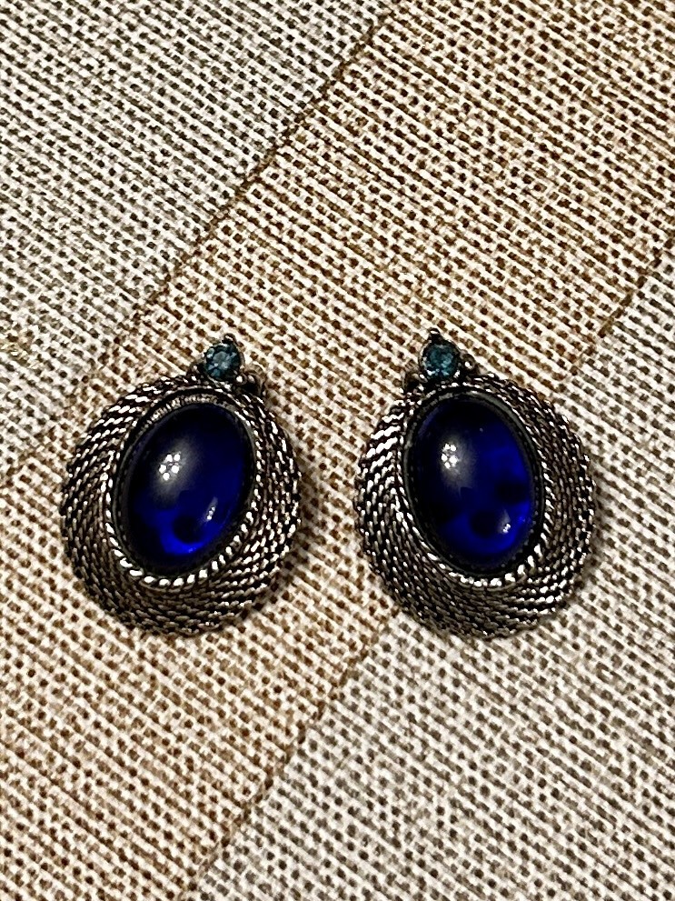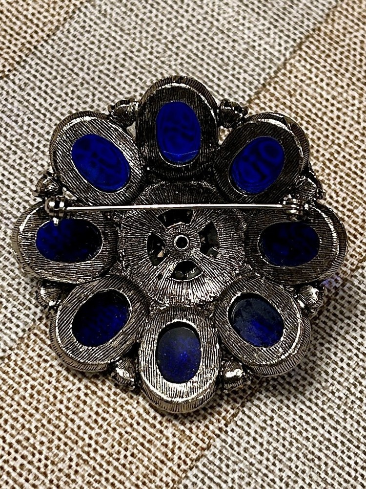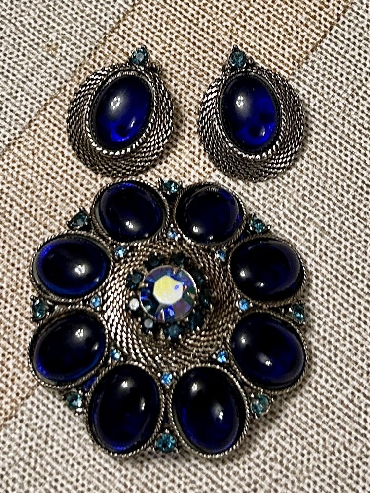The Antique Granat Jewelers Brooch + Earring Set features a beautiful design by Granat Brothers of San Francisco with a bohemian theme. The set includes a brooch with a blue Bohemian stone. The earrings match the brooch in design and color, making it a stunning vintage and antique jewelry piece for any jewelry enthusiast looking for a unique and elegant addition to their collection.