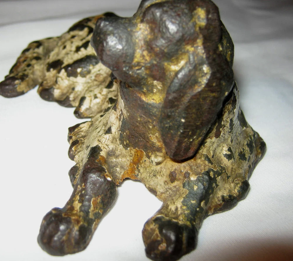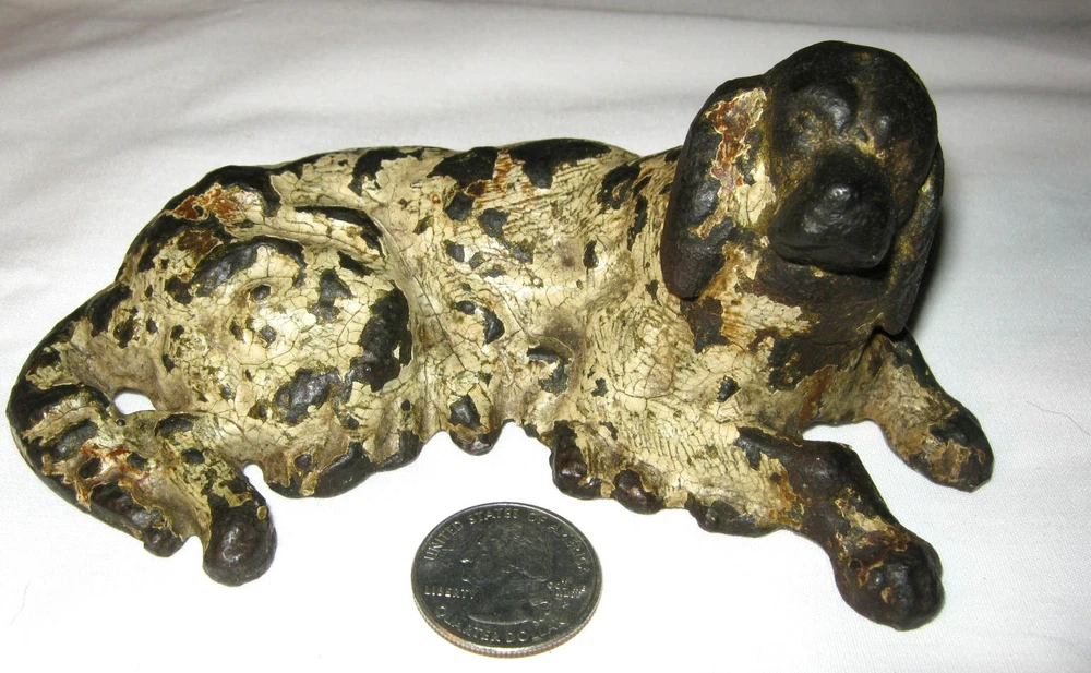 Background texture example REGARDING INVOICE: PLEASE BE SURE TO WAIT FOR INVOICE BEFORE PAYING FOR ITEM. THANK YOU! **** BEING OFFERED IS THIS SCARCE & MUCH HARDER TO FIND, *** CONNECTICUT HISTORIC ESTATE FRESH, ANTIQUE VICTORIAN ERA, HEAVY & SOLID CAST IRON WITH GREAT ORIGINAL WHITE PAINT, NOSTALGIC & RARE STAFFORDSHIRE SPANIEL DOG ART STATUE - PAPERWEIGHT, IN VERY GOOD TO EXCELLENT AGED CONDITION ( PLEASE VIEW MY PHOTOS ). HE / SHE IS SCARCE AND MUCH HARDER TO FIND IN TODAYS ANTIQUE DECORATIVE CAST IRON MARKET PLACE!! HE / SHE HAS NOT BEEN WASHED, CLEANED, OR WAXED. HE / SHE IS QUITE WELL MADE AND I'M CERTAIN THAT YOU WILL BE QUITE PLEASED TO OWN AND DISPLAY HIM / HER!! HE / SHE HAS NO STRUCTURAL DAMAGE AT ALL!! HE / SHE IS QUITE HEAVY, SOLID, THICK, CLEAN, STRONG, AND WELL MADE!! HE / SHE MEASURES A WONDERFUL DESK ART DISPLAY SIZE: 5 5/8 " LONG, X 3 1/2 " FRONT TO BACK, X 2 1/4 " HIGH. HE / SHE HAS NORMAL PAINT AGE WEAR AS SHOWN. HE / SHE IS GUARANTEED ANTIQUE VICTORIAN AND IS BEING SOLD AS FOUND / AS SHOWN. GOOD LUCK!! Many Great Items Listed. Please View My Other Auctions, Thank You! *** We also have an Ebay store.........please check it out, We have many Antiques listed. ***Thanks Again*** Connecticut Residents: Please Add 6% State Tax. NOTE: We Will Ship Any Item Within The U.S. Except items marked Pick Up Only. We will also ship Small Packages To Canada, Thank You. Shipping will be By USPS or UPS. *** NOTE: BEST OFFER TERMS *** BUYER : Please be sure to wait for invoice before making payment, thank you. *** Buyer To pay shipping on items when BEST OFFER is accepted. Shipping will be calculated to your location. ALL ITEMS SHIPPED INSURED. *** Items will be shipped within 5 days of cleared payment. If item is returned,for any reason ,refund will be for selling price only. Buyer to contact seller within 24 hours of end of sale. A small fee of $ 2.00 to $ 4.00 will be added to cover packing materials....tape,bubble wrap, paper,packing peanuts,etc...except on large packages.......Thanks for understanding. If You Have ANY questions, Please do not hesitate to ask before you bid. We do our best to describe each item completely and post clear images for your review.....All items are sold as is, NO returns unless an error was made by us Thank You for viewing and Have a Wonderful Day ! ! Pictures and discription are property of wheelboy02 for use on Ebay ONLY and no one has permission to copy or paste them, thank you.