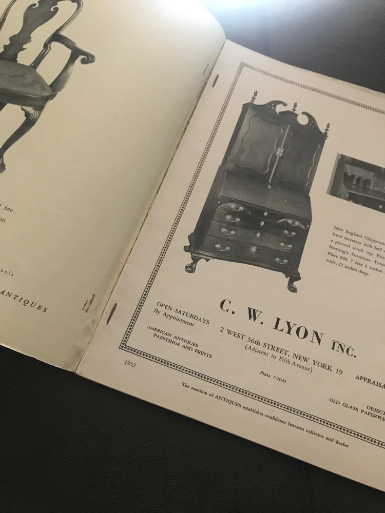 The Magazine ANTIQUES October 1952 Condition is Good. Shipped with USPS Media Mail. A vintage Magazine over 60 years old! Magazine shows wear look at pictures! No missing pages!