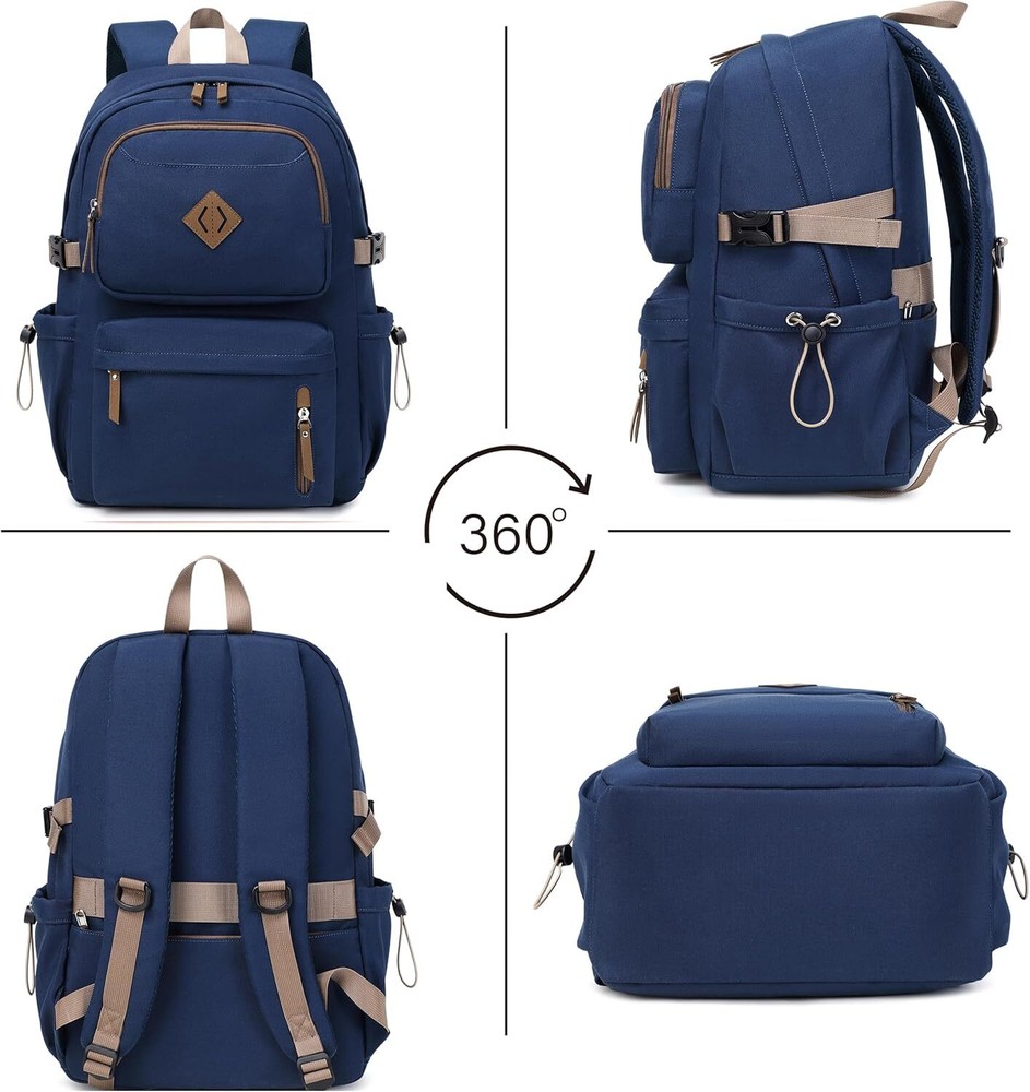 AO ALI VICTORY laptop backpack 15.6 inch anti theft travel backpacks for Blue Product Details 【Size & Design】: The size of back pack is 12.8"x5.9"x17.7"(L*W*H), Weight:1.3 LB. The laptops bag with padded compartment sleeve fit for 13.3,15.6 ,16.1 inch tablet. This women book bag also along with genuine leather brand logo and zipper puller makes the bags more fashionable and unique 【Waterproof Material &Smooth Zipper】: The campus backpack is made of waterproof, ultra-lightweight, high density nylon fabric and soft polyester lining. The metal zippers closure are used by the premium quality zippers to ensure the long-lasting usage 【Safety & Comfortable 】: The considerate belt on the both side can create a solid base of support if you’re packing a lot of stuffs on the back packs. The widen and thicken durable shoulder straps is well-padded, adjustable and comfortable to carry. The luggage belt on the back can be fitted on luggage/suitcase to make your journey more convenience 【Multi-compartments & Large Capacity 】: The traveling backpack for women has 5 separate different size pockets , one open pocket and two side pockets meet your daily storage. The front three pockets can hold charge device and other small items, convenient for your daily organization. The main pocket of includes laptop padded sleeve with tool pocket to provide roomy space for necessities 【For Any Ages & Occasion】The waterproof backpacking purse is stylish enough for casual and school use, while the design provides the multi functionality. Backpack perfect for young teens, adults. The basic multipurpose rucksack for most of your needs, easy to match your cloths, suitable for short trip, work, shopping, university, school, etc.