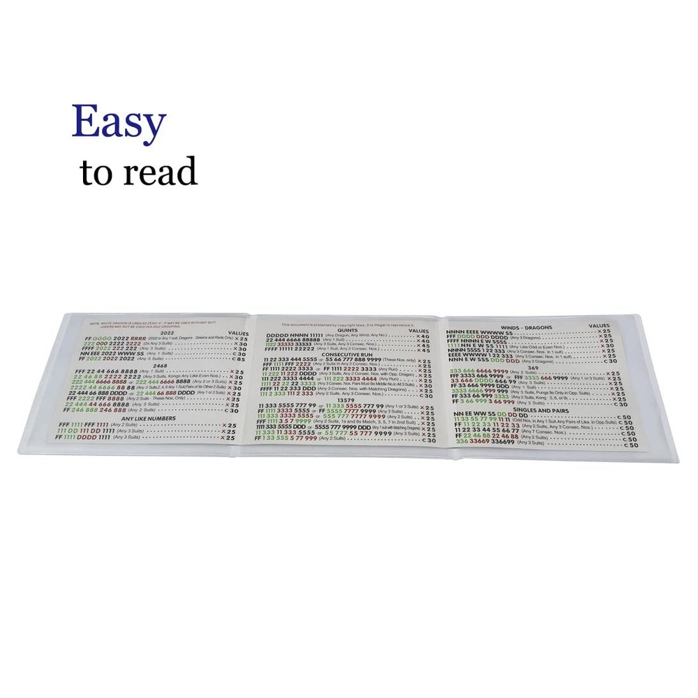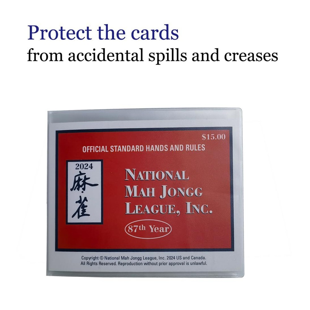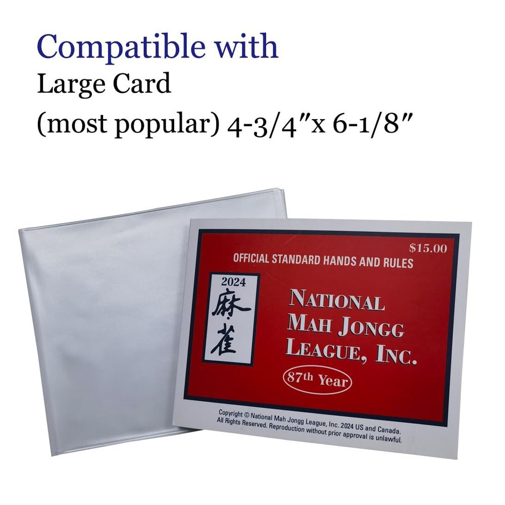 AOG Mahjong Card Holder 1 Piece (Large Print) for National Mah Jongg League Score Cards American NMJL,PVC Durable,Mah Jongg Cover Sleeve Case Protector Accessories 2024 Designed specifically to protect your National Mah Jongg League Hands and Rules Card( Large Print ). Mahjong Scorecards come in Standard and Large, please make sure to choose the correct size.NMJL CARD NOT INCLUDED! NON GLARE plastic, matte finish for easy use. Fully protects your American mahjong cards 2023 from stains and damage. 1 YEAR refund and return warranty. Shipping We offer FREE shipping on all orders! We use a selection of shipping services such as UPS, FedEx, USPS etc. We only ship to the lower 48 states, no APO/FPO addresses or PO Boxes allowed. Local pickups and combined shipping options are not provided at this time. Return You can return a product for up to 30 days from the date you purchased it. Any product you return must be in the same condition you received it and in the original packaging. Please keep the receipt. Payment We accept payment by any of the following methods: PayPal Please pay as soon as possible after winning an auction, as that will allow us to post your item to you sooner! Feedback Customer satisfaction is very important to us. If you have any problem with your order, please contact us and we will do our best to make you satisfied. Contact Us If you have any queries, please contact us via ebay. We usually respond within 24 hours on weekdays. Please visit our eBay store to check out other items for sale! Thank you for shopping at our store.
