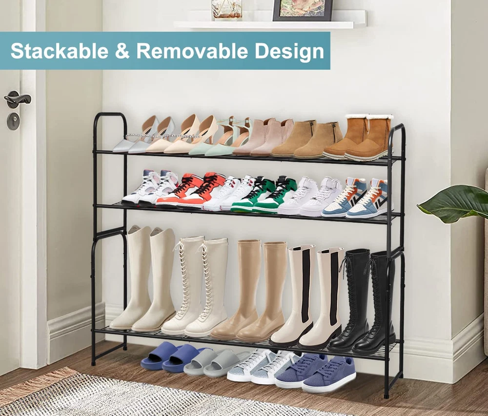 3-Tier Stackable Shoe Rack – Expandable Fabric Storage Organizer
