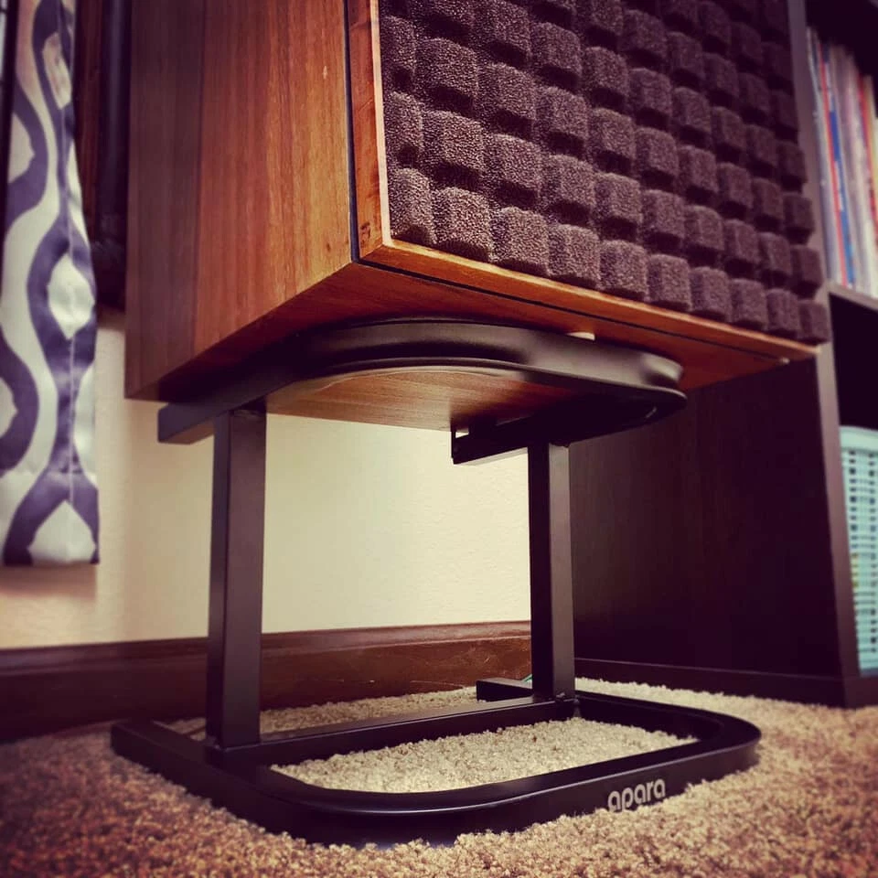Made in the USA !!! NO ASSEMBLY NEEDED. APARA™ Brand Vintage Speaker Stands, Black Powder-Coated Steel. Satin black finish. Dimensions: 10" high x 12" wide x 11" deep. Condition is "New" Sold as a pair of 2 stands. (Speakers not included) Shipped with UPS. UPS flat rate applies to continental US shipments only. Original design for vintage stereo speakers. Use for minimum speaker width of 12" (left to right) and minimum speaker depth of 11" (front to back). 4 degree back-slant (pictured) to maximize listening pleasure. Protective felt discs included to protect speakers and/or flooring. You place felt discs where desired. www.aparastands.com Copy and paste link below to see a YouTube review of the APARA Stands https://youtu.be/A6ALYbQ6k4A *DISCLAIMER: Stands not meant to be used as a step-stool, images depicted merely to show quality of workmanship, durability and overall product strength. Vintage speaker stands. Vintage stereo stands. Speaker stands. Vintage stands.
