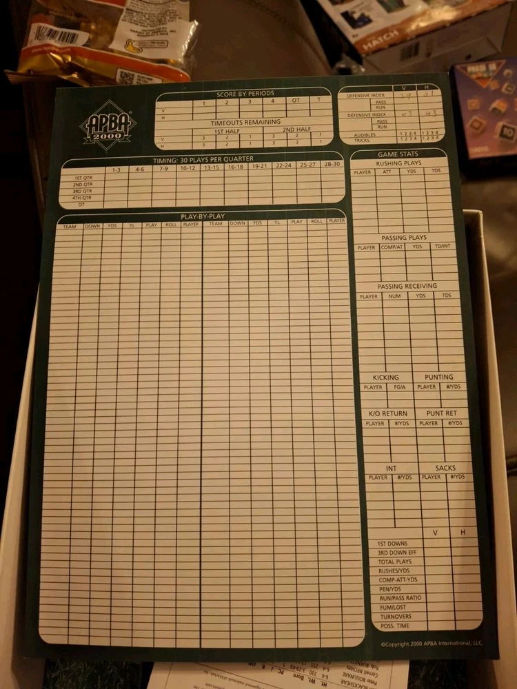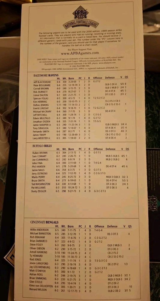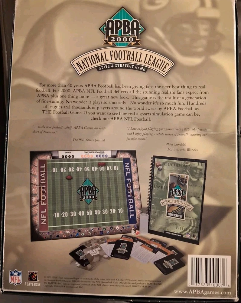 APBA 2000 National Football League Premiere Ed. Stats Strategy Game Complete!