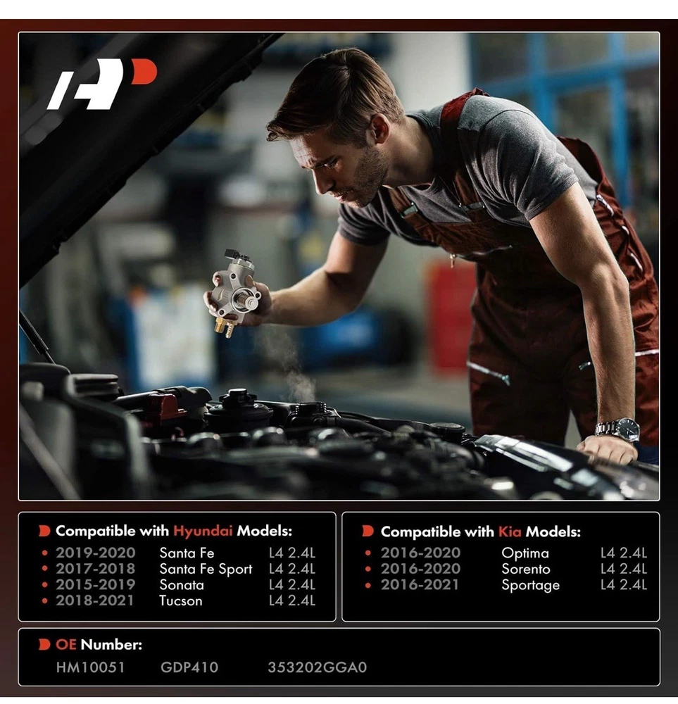 Compatible with Hyundai Santa Fe 2019-2020 L4 2.4L GAS, Santa Fe Sport 2017-2018 L4 2.4L GAS, Sonata 2015-2019 L4 2.4L GAS, Tucson 2018-2021 L4 2.4L GAS; Compatible with Kia Optima 2016-2020 L4 2.4L, Sorento 2016-2020 L4 2.4L, Compatible with Sportage 2016-2021 L4 2.4L