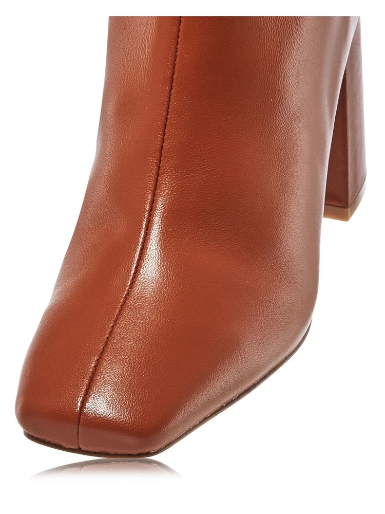 These booties are a total game-changer! The rich brown leather looks so stylish, and the square toe + block heel combo gives them a modern yet timeless vibe. Super comfortable right out of the box—no breaking in needed. The fit is perfect for a 9.5, and the goring detail makes them easy to slip on. Love how versatile they are—dress them up or down, they work with everything. The heel height is just right for all-day wear. Definitely worth every penny!