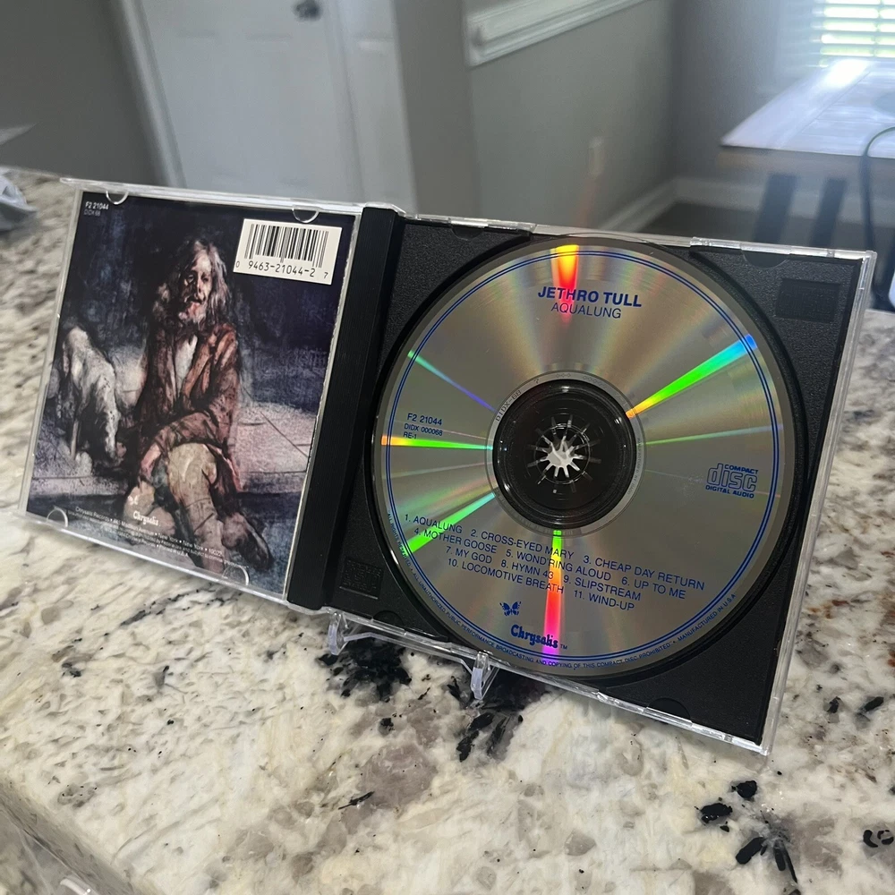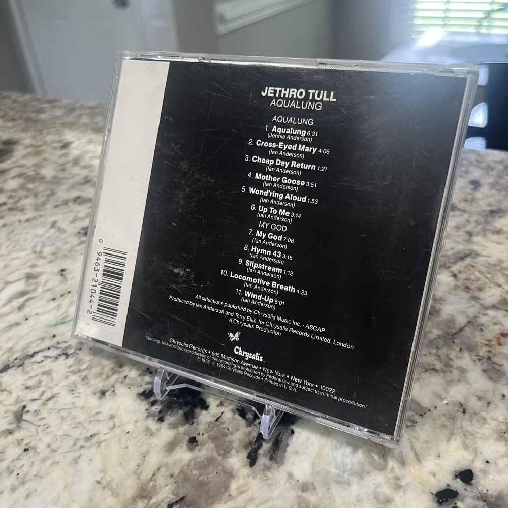 AQUALUNG by JETHRO TULL CD 1984 Chrysalis Records BMG VG+ Experience the captivating sound of Jethro Tull with this excellent (EX) CD grading of their 1984 album, "Aqualung." This reissue edition comes in a standard jewel case and features a striking purple color. The CD includes all the tracks from the album, including the iconic "Rock Me So Hard." The inlay and case conditions are both very good plus (VG+), making it a great addition to any rock music collection. This progressive/art rock album is a must-have for fans of the genre and is sure to impress. Don't miss out on the opportunity to own this gem.