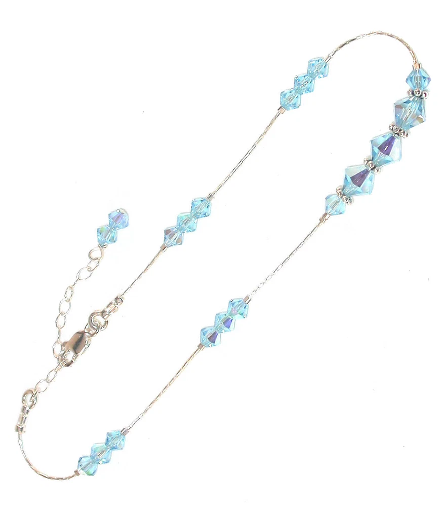 AQUAMARINE Blue Crystal Anklet ANKLE BRACELET Sterling Silver Swarovski Elements SWAROVSKI CRYSTAL ELEMENTS STERLING SILVER ANKLE BRACELET Color: Aquamarine Blue Choose Your Length: See Size Guide Below Made of: 100% genuine Swarovski Crystal Elements Metal: .925 Sterling Silver This Anklet is designed with genuine Swarovski Crystal Elements, accented with Bali Silver spacers. The multi-faceted crystals catch the light and sparkle beautifully. All silver used is .925 Sterling Silver. It can be made in 3 sizes, each with a 1" extender that allows it to be fastened for maximum comfort. The extender ends with a dainty dangling crystal charm that hangs down from on the end. Hand-crafted in the USA. SIZE GUIDE SMALL Ankle: 8.5" to 9.5" AVERAGE Ankle: 9.5" to 10.5" LARGE Ankle: 10.5" to 11.5" To measure your ankle, use a string. Put it around your ankle where you would like it to be. Make sure to give a little room for walking comfort. Then lay the string along a ruler to find your size . An Original Design by Tina Kincaid Brand New and Made for you! This item comes gift-boxed. Sets may be boxed together, unless otherwise requested at checkout. CREATE A SET! There are matching pieces available right now in my Ebay store to be purchased separately. Just CLICK ON THE CAPTION to open the listing in a separate page to take a closer look: Matching Earrings CHANGE THE COLOR! We stock most Swarovski crystal colors, all which are equally as beautiful in this design. You are welcome to email special requests or color combinations and check for availability. To view a complete lists of color samples, CLICK HERE to see our COLOR COMPARISON CHARTS! Check out my other items ! Be sure to add me to your favorites list ! INTERNATIONAL BUYERS.... PLEASE NOTE! Import duties, taxes and charges are not included in the item price or shipping cost. These charges cannot be determined by me and may be imposed by your country and are the buyer's responsibility. Please check with your country's customs office to determine what, if any, these additional costs will be prior to bidding or buying.