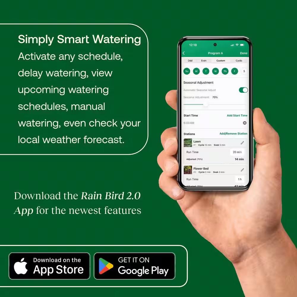 Fast Shipping On All Items 30 Days Money Guarantee Customer Support Excellent Service 100% Satisfaction Satisfaction Guaranteed ARC6 6-Zone App Based Indoor Residential Irrigation Controller Specification Back Battery Type No Backup Color Family Grays Commercial/Residential Residential Compatibility Type In-Ground Moisture Sensor Compatible,Rain Sensor Compatible,Weather Station Compatible Features Electronic,Surge Protection Included Mounting Hardware,Transformer Indoor/Outdoor Indoor Irrigation System Component Controller/Timer Mount Location Wall Number of Programs 3 Number of Start Times 12 Number of Zones 6 Pack Size 1 Power Options Hardwired,Plug-in Power Type Hardwired,Plug-In Program Type Calendar Setting,Interval Setting,Multi-Zone Programming,Odd/Even Day Program,Programmable,Rain Delay,Schedule Programming Remote Access Remote Access Requires Hub? No Hub Required Returnable 90-Day Smart Home Smart Home Enabled Smart Home Protocol Bluetooth,Wi-Fi Smart Technology App Controlled,Smart Timer,Smart Watering,Voice Controlled,Wi-Fi Sprinkler Location Below ground Sprinkler Type Fixed,Pop-Up,Portable,Rotary Timer Type Digital Timing Segments 1 hour,1 minute,10 minutes,15 minutes,30 minutes,45 minutes,5 minutes Voice Control Hub Required Alexa via Proprietary Bridge/Gateway Google Assistant via Proprietary Bridge/Gateway Works With Alexa, Alexa, Google, Google Assistant, Proprietary App Manufacturer Warranty If a purchaser of any new Rain Bird consumer product becomes dissatisfied with it for any reason, he may return it to the retailer where it was purchased within a reasonable time for a full refund. Product Depth (in) 8 in Product Height (in) 3 in Product Width (in) 8 in 8.0 inches x 8.0 inches x 3.0 inches. Item Description Control your sprinklers from anywhere with the free Rain Bird app Quick pair technology for seamless set-up Self-adjusting technology reduces water usage and saves money Put control of your sprinkler system in the palm of your hand with a smart irrigation WiFi controller from Rain Bird. The ARC6 Controller provides simple commands on the interface that are complemented by advanced features accessed through the Rain Bird mobile app. With the ability to accommodate up to six stations plus master valve/pump start relay and rain/rain freeze sensor, this controller is suitable for indoor mounting. The controller provides flexible scheduling features to accommodate a wide variety of landscape applications that can be adjusted automatically all year long to ensure a healthy, beautiful landscape, saving you time and money. That's The Intelligent Use of Water About us We offer the best prices around on high quality products. Our E-store includes media such as books, movies, music and games while offering electronics, toys, sporting apparel, clothing, tools, general home, garden items and more. Shipping We are always working hard to ensure your package arrives as soon as possible. Please understand that some factors like weather, high postal traffic, and the performance of shipping companies are outside of our control. We offer free shipping to the lower 48 states and ship within 2-3 business days of payment, usually sooner. We do not accept P.O. Boxes. Please provide a physical address. For shipping outside of the continental USA, we only use eBay's Global Shipping Program.The item is shipped to KY and then sent to the rest of the world. International customers are responsible for all duties and taxes. Continue to check out to calculate costs for shipping the item to your country. Messages regarding eBay's Global Shipping Program MUST be directed at eBay EXCLUSIVELY. Returns We offer a 30-Day Return Policy on items in which you are not completely satisfied with. You have the option of a full-refund or an exchange of the item. No returns are available on items shipped outside of the USA Satisfaction We try over very best to make sure every customer is completely satisfied. If there's a problem, message us! We're happy to help. Payment Options Shop With Confidence