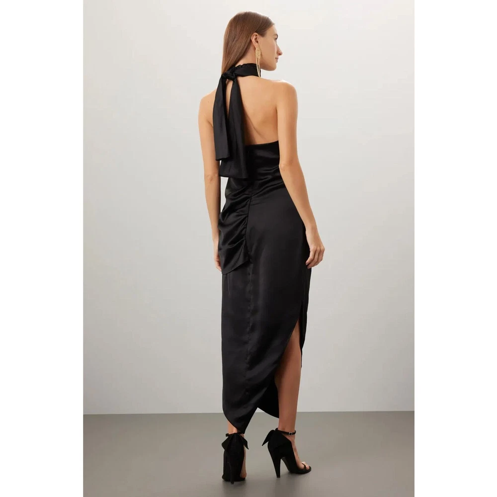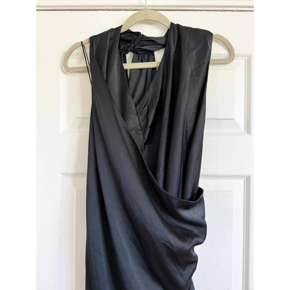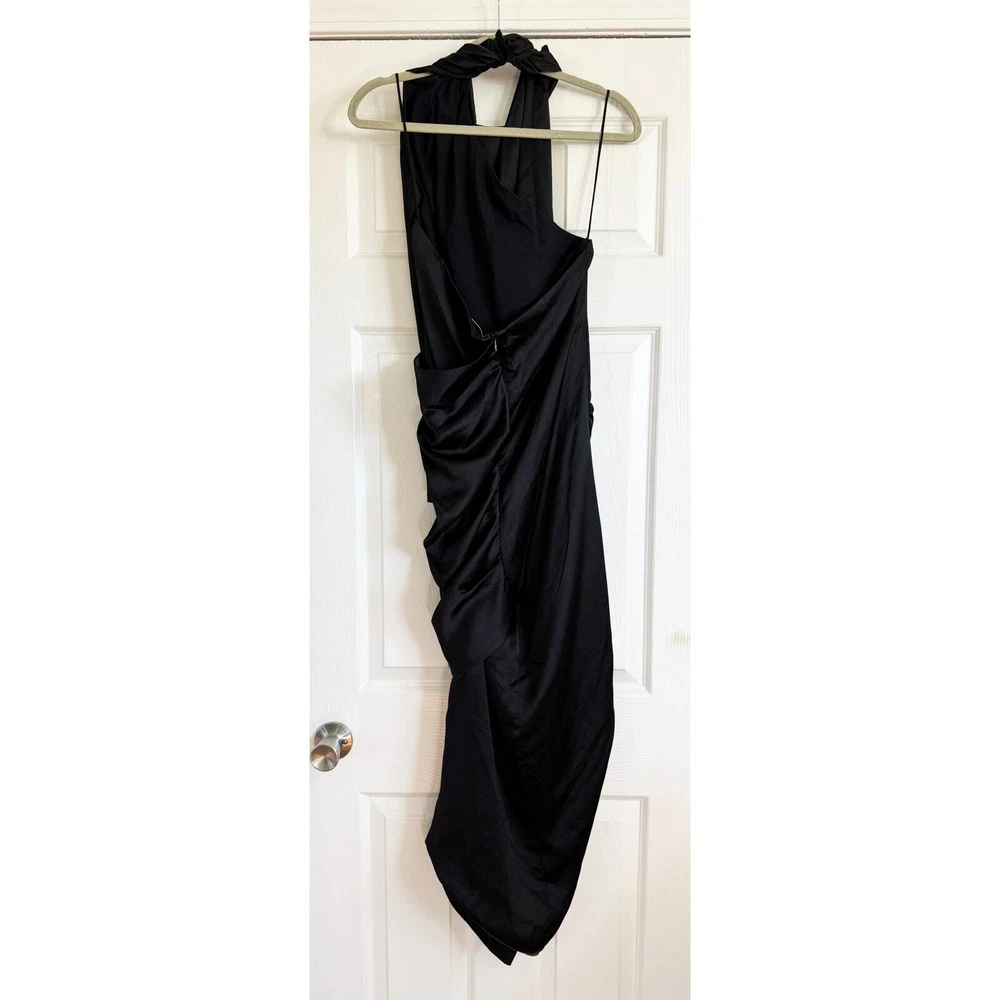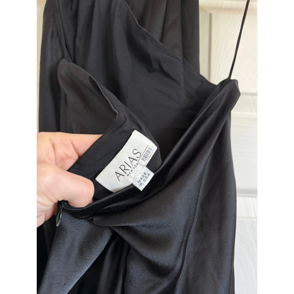Designer: Arias New York Size: US 12 Description: A-line. Sleeveless. Asymmetric. Back zipper closure. Condition: Pre-owned in great condition Measurements: 17” across at the chest, 16” across at the waist, 21” across at the hip, 55” length Composition: poly