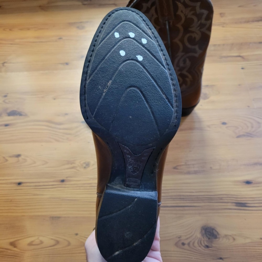 Type:BootUS Shoe Size:8.5Theme:CowboyUpper Material:LeatherShoe Width:DSeller Notes:“Good condition. Has some skuffs as shown in the pictures”Brand:AriatDepartment:MenClosure:Pull OnUK Shoe Size:7.5Style:WesternColor:Brown