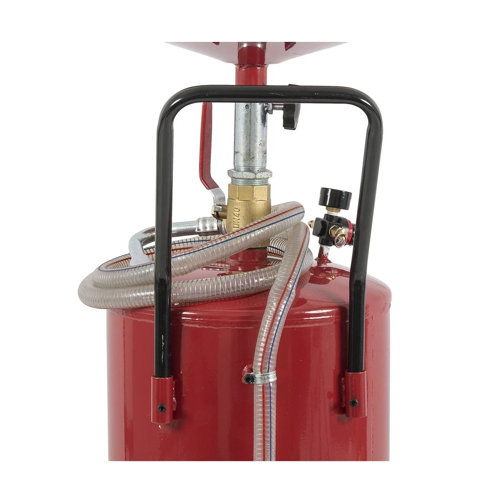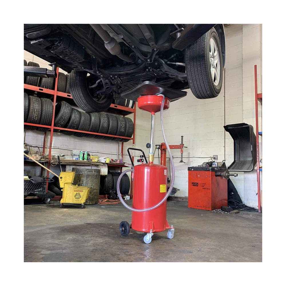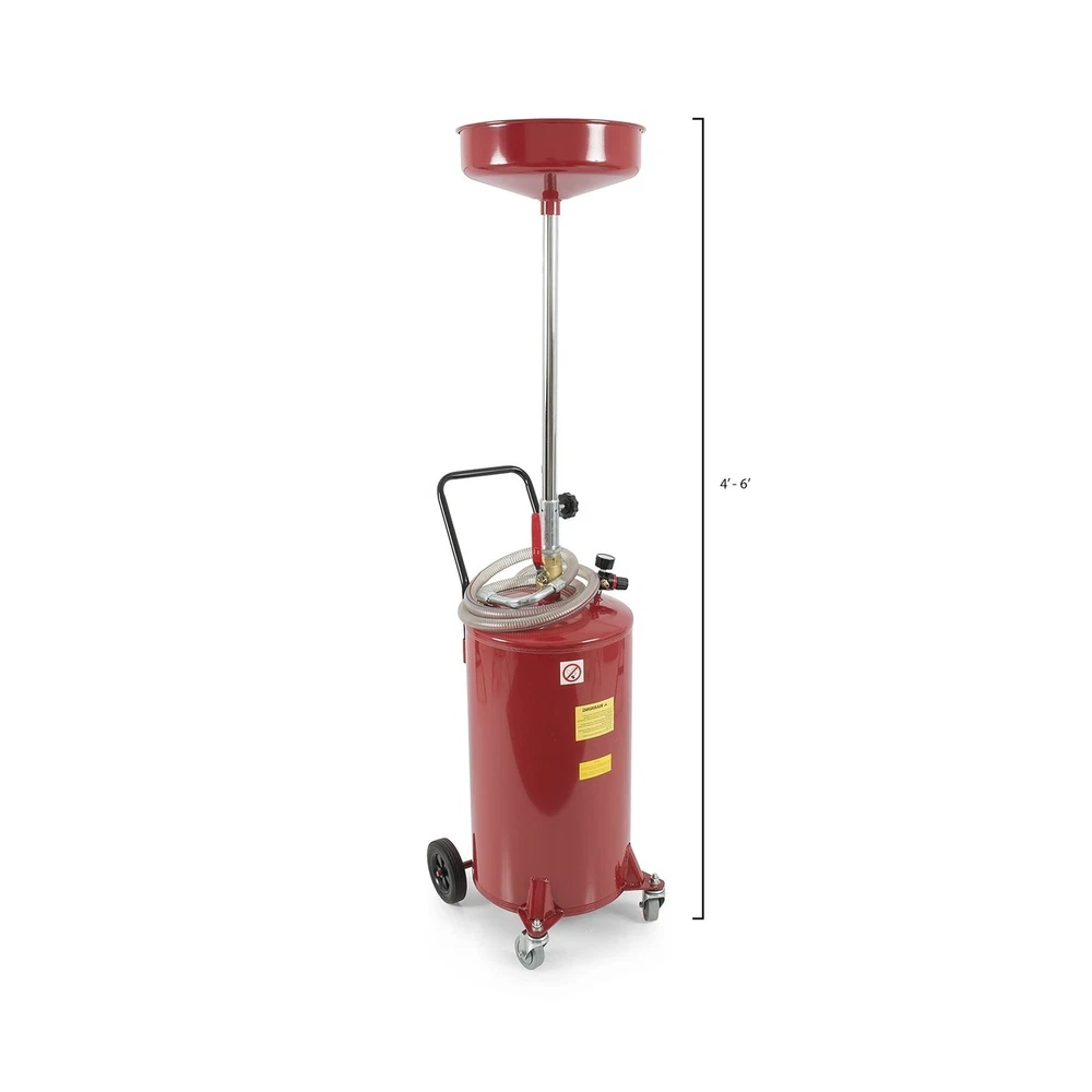 ARKSEN 20 Gallon Waste Oil Change Tank, Portable Air Operated Fluid Drain Disposal with Adjustable Height, Heavy Duty Construction with Wheels, Automotive - Red Description Features: [EFFICIENT DRAINING] This oil drain allows you to easily transfer used oil from the built-in tank to your own secondary container for effortless recycling at any height. [ADJUSTABLE HEIGHT] You can adjust the height of this device from 45" To 72-1/2", making it easier to drain fluids from vehicles on lifts. [STORAGE CAPACITY] This tank stores 20 gallons of waste oil and is supported by 4 wheels. [INCLUDES ALL MATERIALS] This 20 gallon oil drain tank arrives with 4 wheels, a regulator, a drain hose and a gauge with a 1/4" NPT air coupler. [Working Pressure] Working Pressure: 10PSI - Gauge: Gauge: 0-23PSI In 0.5 PSI Increments. Product Details: Manufacturer: ARKSEN Part Number: 002-AU-20024 Item Weight: 36.9 pounds Product Dimensions: 36 x 18 x 18 inches Item model number: SUVELAM Color: Red Material: Steel Item Package Quantity: 1 Batteries Included?: No Batteries Required?: No Date First Available: May 21, 2013 Handling We will ship all orders within 3 business day of payment. Delivery We Do Not Ship Outside of the Continental US. Return Policy All items qualify for returns within 30 days of receipt. Buyer is responsible for return shipping on any item that is not damaged. Feedback We take our reputation seriously, we buy and sell online, so we understand the value of trust. If you are unsatisfied with your order, please contact us and we will work with you to resolve it to your satisfaction.