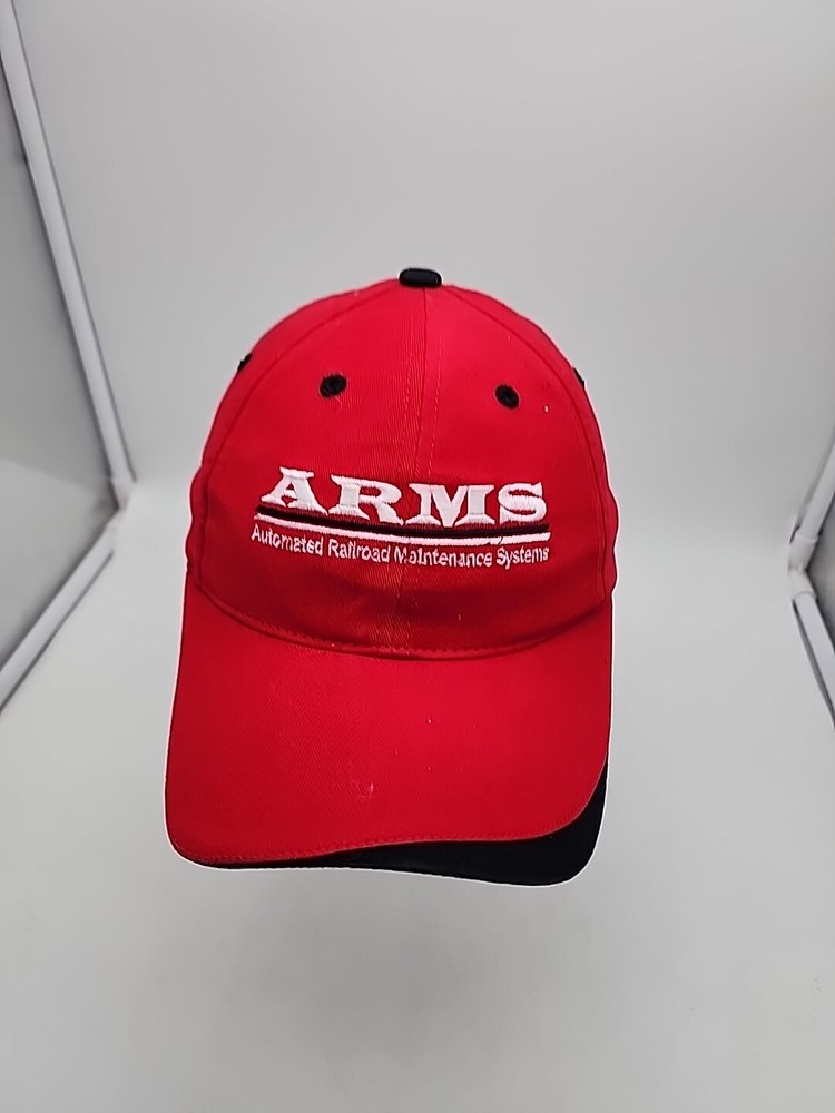 ARMS Automated Railroad Maintenance Systems Red Strapback Baseball Cap This is a used hat. Having said that, this hat has been cleaned and reshaped. Please see the pictures for condition. Like with most used hats, there may be fading, stains, and may be distressed.