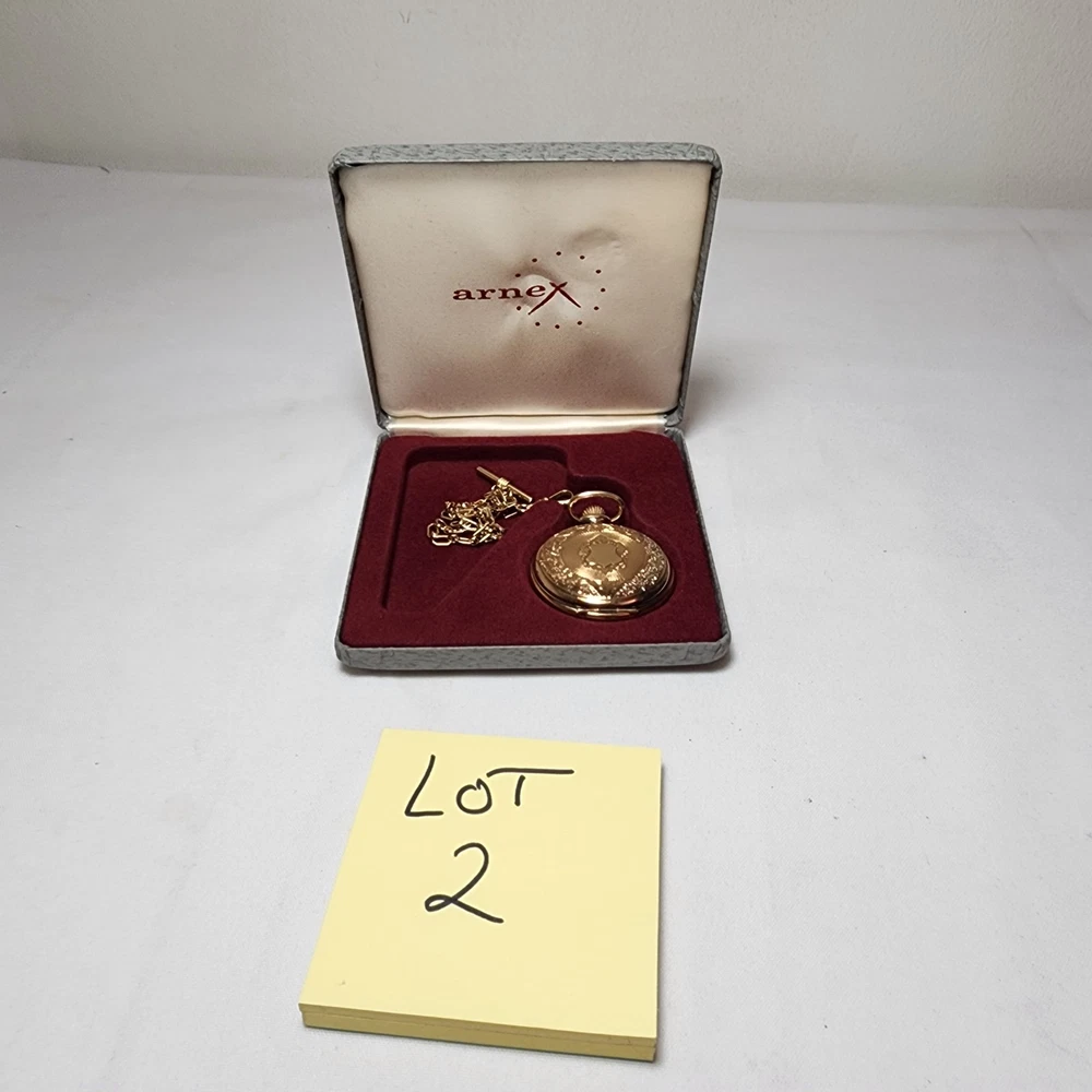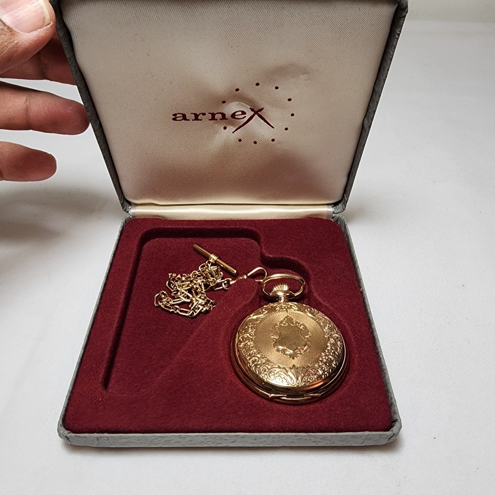 Customized:NoDisplay:AnalogCase Color:Yellow GoldVintage:NoWith Papers:NoSeller Notes:“Normal wear as shown in the photos. ** Untested** Needs Battery. SOLD AS IS>”Indices:Roman NumeralsWith Original Box/Packaging:NoCase Material:Gold PlatedDepartment:MenType:Pocket WatchFeatures:12-Hour DialPocket Watch Size:48MMMovement:QuartzStyle:CasualClosure:FlowersBrand:Arnex
