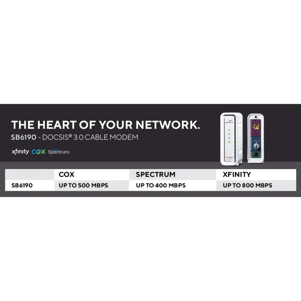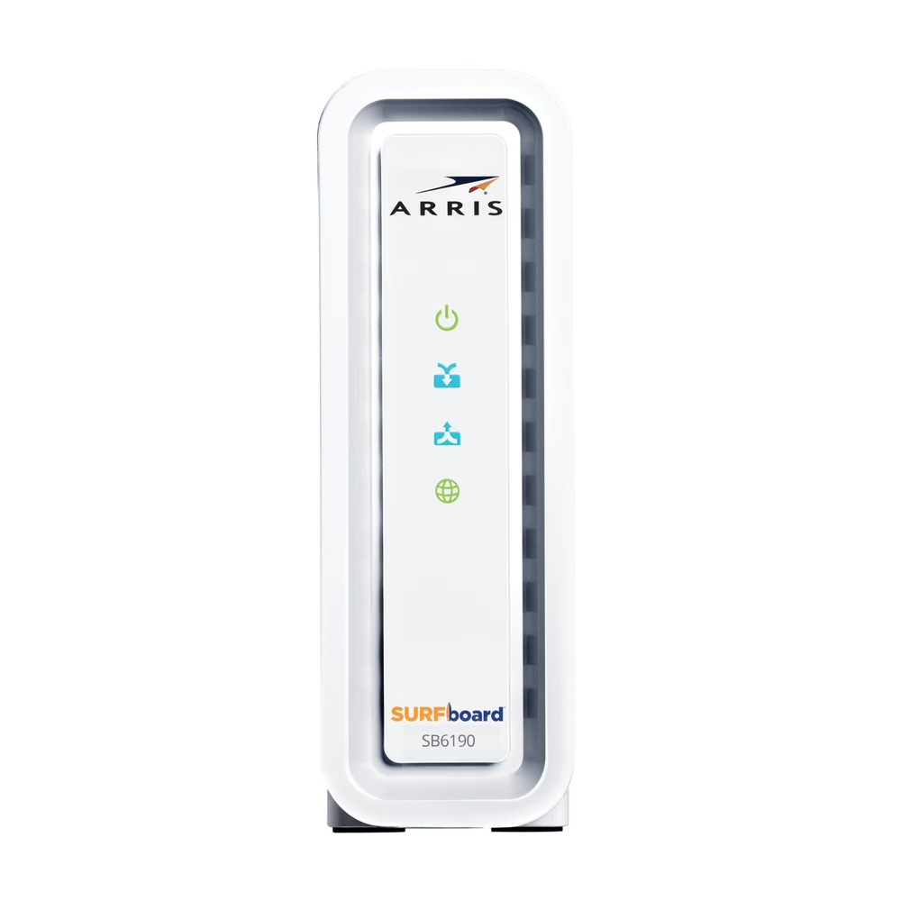 The ARRIS SURFboard DOCSIS 3.0 Cable Modem SB6190 in black is a high-speed modem designed for home networking and connectivity. With a maximum downstream data rate of 1.4 Gbps and a maximum LAN data rate of 1000 Mbps, this modem offers fast and reliable internet access. It features an Ethernet port for wired connections to a PC, making it easy to set up and use. The modem is unlocked and carrier-unlocked, providing flexibility and compatibility with various internet service providers. With its sleek black design and ARRIS brand reputation, this modem is a great choice for those looking for a reliable and efficient internet connection.