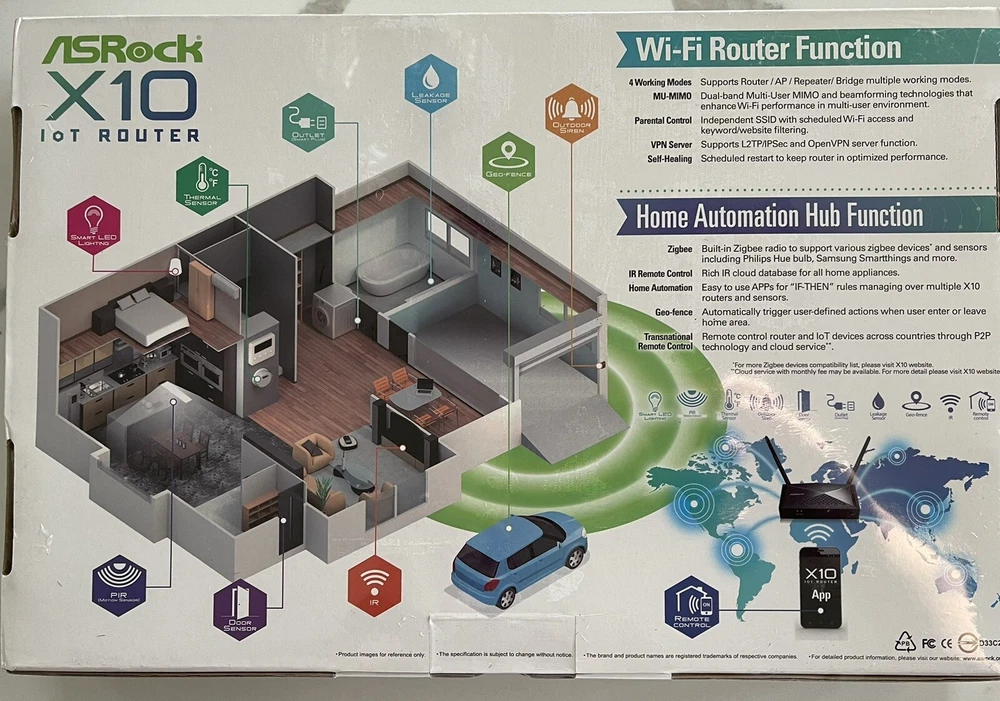 Introducing the ASRock X10 AC1300 2-in-1 IoT Wireless Router, perfect for all your home networking and connectivity needs. This smart home automation device is equipped with ZigBee and IR capabilities, making it a versatile and cost-effective solution for your household. With a maximum LAN data rate of 300 Mbps and maximum wireless data rate of 1300 Mbps, this router is designed to provide fast and reliable internet connectivity. It also features dual-band connectivity, four LAN ports, and a sleek black color that complements any home décor. Get the best of both worlds with the ASRock X10, a powerful and efficient wireless router that simplifies your daily routines.