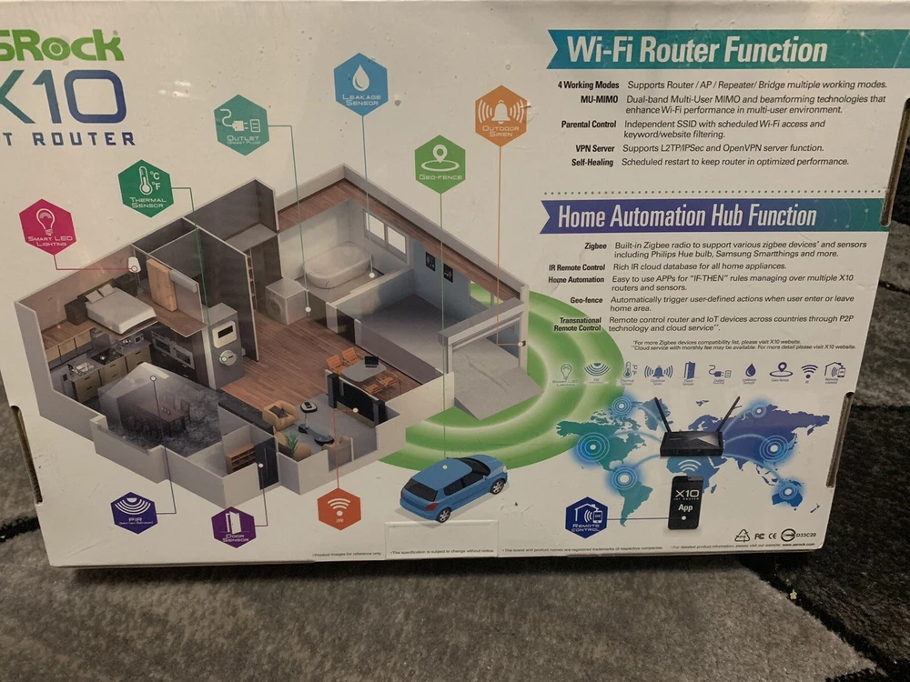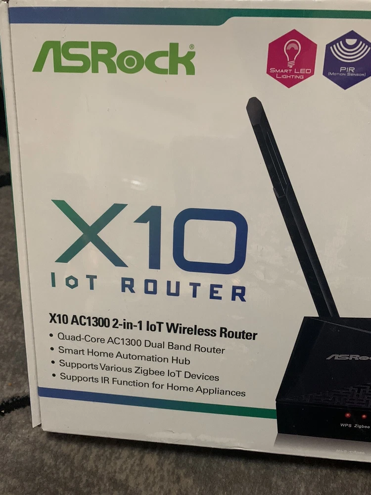 Features:Dual-BandConnectivity:WirelessPorts:Ethernet (RJ-45), USB 2.0, USB 3.0Maximum Wireless Data Rate:800 MbpsMaximum LAN Data Rate:1000 MbpsBrand:ASRockNumber of LAN Ports:4Model:ASRock x10 ac1300Item Height:188 mm with antennaItem Width:161 mmItem Length:210 mmType:RouterColor:Black
