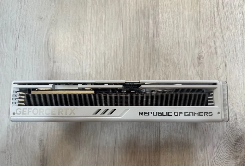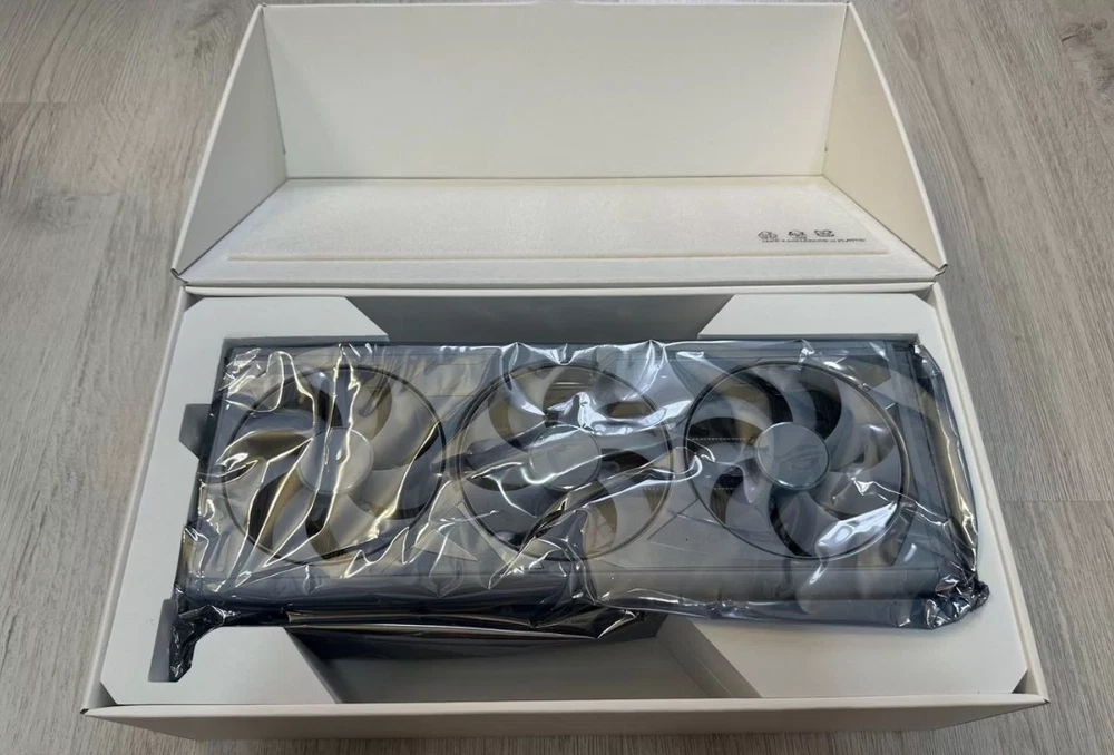The ASUS ROG Strix GeForce RTX 4090 OC Graphics Card features a NVIDIA GeForce RTX 4090 chipset with 24GB of GDDR6X memory. It offers DisplayPort and HDMI connectors, RGB lighting, and is compatible with G-SYNC/FreeSync. This powerful graphics card supports DirectX 12 Ultimate and OpenGL 4.6 APIs, requiring a 16-Pin Pci-E power cable for operation in a PCI Express 4.0 x16 slot.