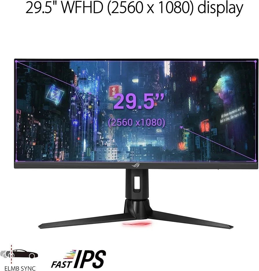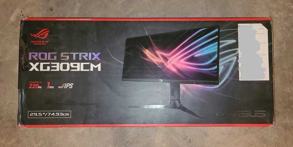 ASUS ROG Strix XG309CM 29.5” Ultrawide Gaming Monitor - Open Box, Excellent Condition Condition: - Open Box - Like New: This monitor is in excellent condition, fully tested, and works perfectly. - Includes all original accessories, cables, and packaging. - The box has been opened, but the monitor is **unused and in perfect working order**. Product Features: - **29.5" Ultrawide Display (2560 x 1080, 21:9 Aspect Ratio)** – More screen space for immersive gaming and productivity. - **220Hz Refresh Rate & 1ms Response Time (GTG)** – Ultra-fast performance for competitive gaming. - **Fast IPS Panel** – Provides high color accuracy and smooth motion with wide viewing angles. - **G-Sync Compatible & FreeSync Premium** – Eliminates screen tearing for a seamless gaming experience. - **Extreme Low Motion Blur Sync (ELMB Sync)** – Reduces ghosting and motion blur for sharper gameplay. - **USB-C with Power Delivery (15W)** – Connect and charge compatible devices with a single cable. - **Versatile Connectivity** – Features **DisplayPort 1.2, HDMI 2.0, USB-C, and USB hub** for multiple device connections. - **Ergonomic Stand** – Adjustable tilt, swivel, pivot, and height for maximum comfort. - **VESA Mount Compatible** – Easily mount to a wall or monitor arm for a clean setup. What’s Included: ✅ ASUS ROG Strix XG309CM 29.5" Ultrawide Gaming Monitor ✅ Power cable ✅ DisplayPort & HDMI cables ✅ USB-C cable ✅ User documentation ✅ Original box and packaging Why Buy From Us? ✔ Carefully inspected & guaranteed to work perfectly ✔ Fast & secure shipping– Ships within 1 business day ✔ 30-day return policy for peace of mind Please Note: - The first image may include a stock photo for reference. Additional photos of the actual item are available—please review them carefully. - If you have any questions, feel free to message us before purchasing.