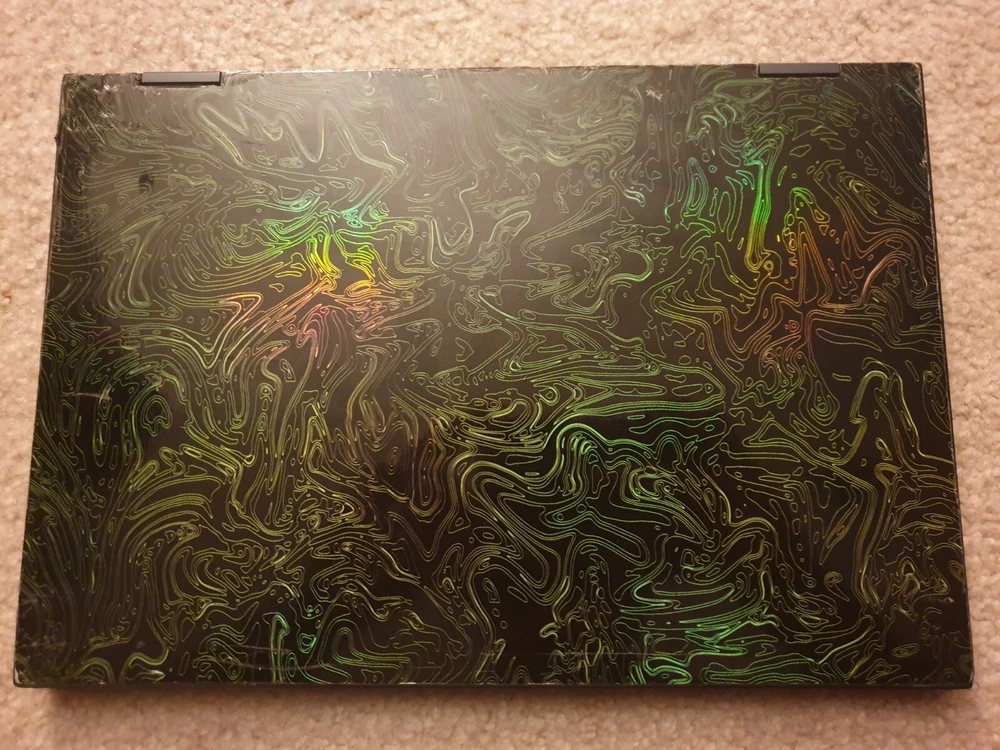 This laptop was used almost daily for 2 years, this is the Pine Gray colored variant with two dbrand REMOVABLE skins on around the keyboard and on the outside. It is touch screen and OLED. It is very lightweight around 2.87 lbs. If you tap the icon on the top right of the trackpad it turns into a calculator. The included pen is still working but it needs a new battery, will be given fully wiped with the included Windows 11 Home license. The original/OEM charger is NOT included, that one broke after awhile, I have been using a Nekteck 60W usb c charger from amazon with it and that will be included.