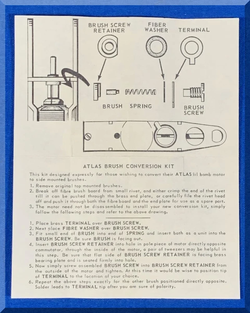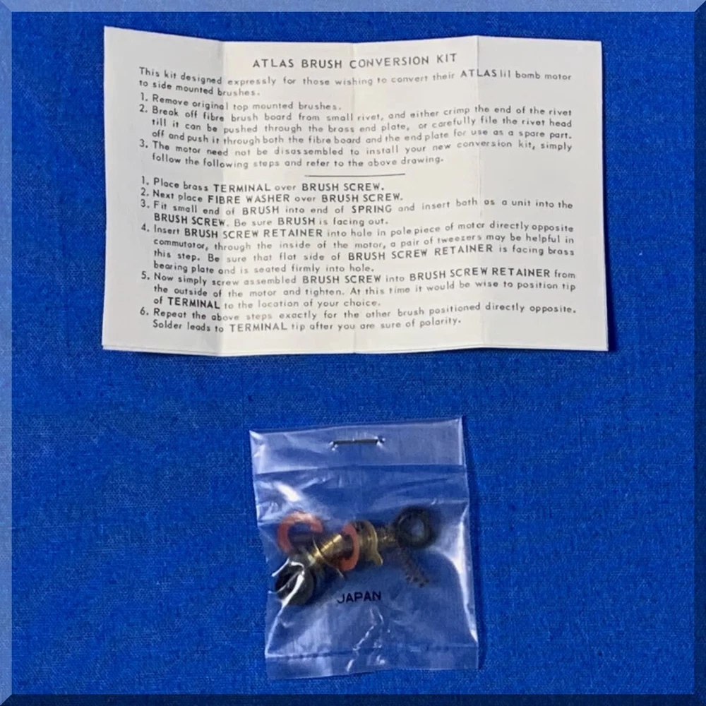 VINTAGE ATLAS SLOT CAR HOME RACING PARTS - REPLACEMENT CHASSIS MOTOR BRUSH ASSEMBLY CONVERSION KIT THIS 1960`S PACKAGE INCLUDES THE FOLLOWING ITEM(S): VINTAGE ATLAS SLOT CAR PARTS - REPLACEMENT MOTOR BRUSH ASSEMBLY THIS LISTING INCLUDES AN OLD HOBBY SHOP STORE STOCK FACTORY SEALED ATLAS REPLACEMENT PART - SINGLE CARD - MINT CONTENTS ONE (1) CHASSIS MOTOR BRUSH ASSEMBLY CONVERSION KIT FOR ATLAS LITTLE BOMB AT-208 8V 1570-1 SLOT CAR MOTOR - STOCK NUMBER 1570-6C I WILL LET THE OVER SIZED PHOTO DO THE TALKING - OVERALL CONDITION IS MINT NOTE: This kit was designed expressly for those wishing to convert their ATLAS lil bomb motor to side mounted brushes NOTE: A LL PHOTOS ARE BEING USED WITH PERMISSION OF THE ATLAS SLOT CAR MUSEUM !!! NOTE: 1:24 & 1:32 SCALE THESE ARE GUARANTEED TO BE 100% ORIGINAL - NO REPRODUCTION I USED TO BE A SLOT CAR EXPERT AND WILL LET THE OVERSIZED PHOTOS SPEAK FOR THEMSELVES OVERALL CONDITION IS MINT SHIPPING - I SHIP WORLDWIDE ITEM(S) WILL BE PROFESSIONALLY PACKAGED CAREFULLY AND SECURELY I OFFER FREE INSURANCE & TRACKING WITH BUY NOW PAYMENT - VARIOUS PAYMENT OPTIONS AVAILABLE FEEDBACK - I LEAVE FEEDBACK FOR ALL TRANSACTIONS AS THE SELLER, AS SOON AS YOUR PAYMENT ARRIVES, I LEAVE POSITIVE FEEDBACK AS THE BUYER, PLEASE LEAVE POSITIVE FEEDBACK THE DAY THAT YOU RECEIVE YOUR WELL PACKAGED ITEM(S)