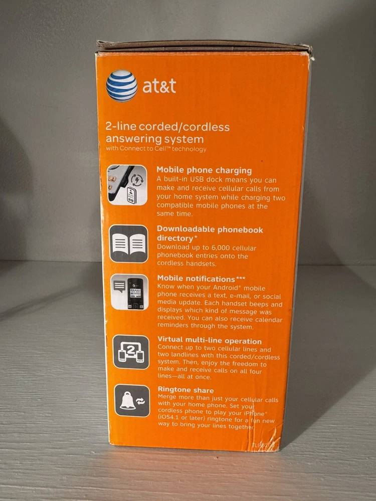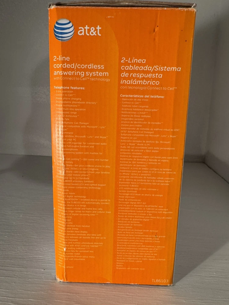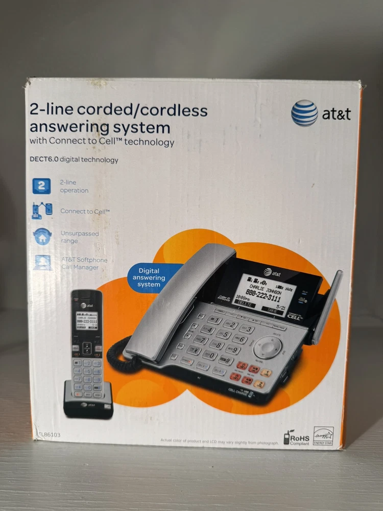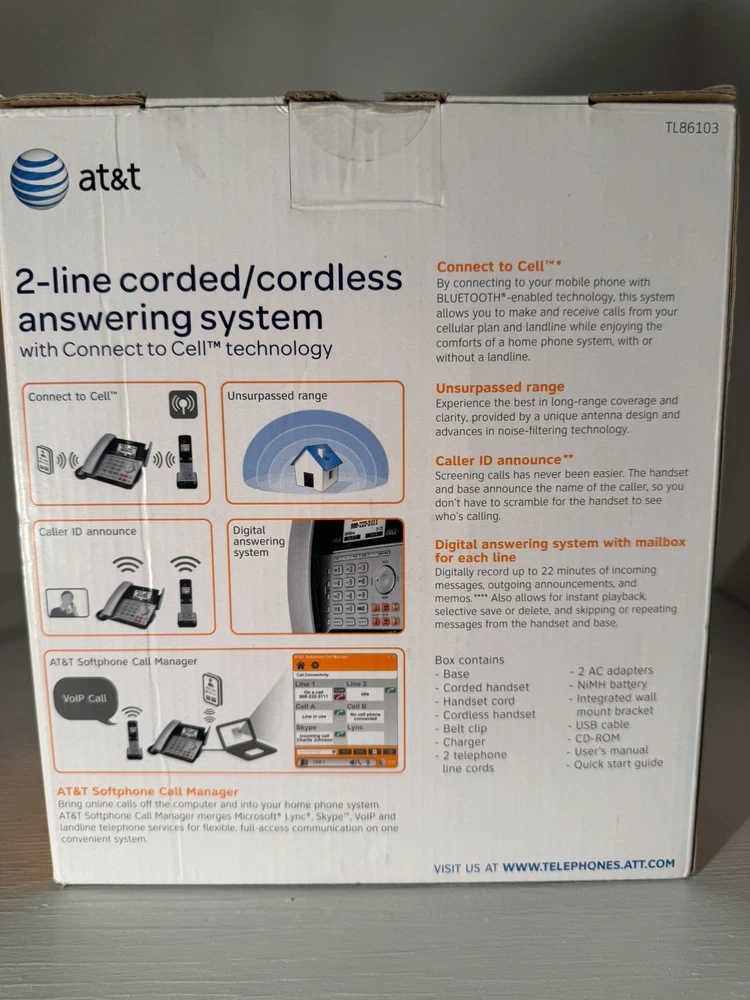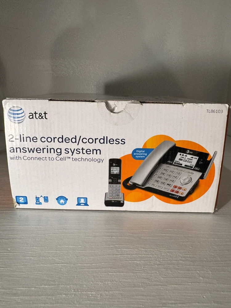 The AT&T TL86103 is a sleek gray 2-line corded/cordless phone with Bluetooth functionality, making it easy to switch between calls and connect to mobile devices wirelessly. This model is designed for home or office use, offering convenience and flexibility with its expandable features. Ideal for those who need to manage multiple phone lines efficiently, the AT&T TL86103 provides reliable communication capabilities in a modern and user-friendly design. Shipping price is for the 48 contiguous states only, do not ship to PO Boxes.