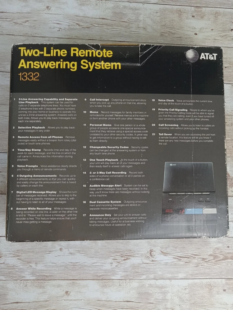 AT&T Two-Line Remote Answering System 1332 Vintage
