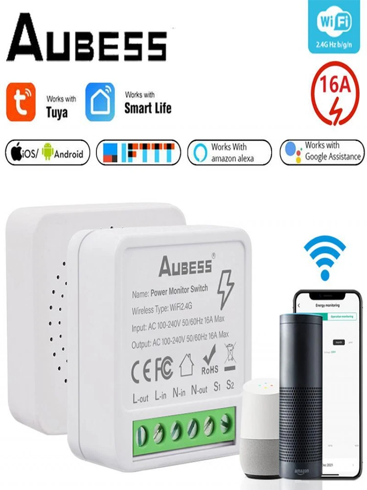 Description: Color:white Output:AC 100-240V 50/60Hz Input:AC 100-240V 50/60Hz Wi-Fi:IEEE 802.11b/g/n Material:PCV-0 Certified product:CE ROHS Maximum current:16A Specifications: 1. Refit ordinary non-smart appliances or equipment into smart devices. Such as refitting a desk lamp into a smart desk lamp, and the mobile phone can control the switch of the light. To turn the downlight into a smart downlight, you only need to connect a smart switch module to the switch, and then Alexa/Google assistant/yandex can control the light switch. 2.Electricity statistics View energy reports to properly track energy usage around your home. Know which devices consume the most energy, and make plans to save energy and electricity bills. 3. Mobile APP control. Control the device's power on and off, timing, countdown and other functions through the mobile phone. As long as the mobile phone has a network, the switch module at home can be controlled globally. 4. Voice control. Support voice assistants such as Yandex alice, Alexa, Google Home, and realize functions such as switches; "Alexa, turn on the kitchen lights." You can turn on the lights in one sentence and enjoy a convenient smart life. 5. Timing. You can control the switch, timing, countdown and other functions of the device through your mobile phone. This can be ordered: turn off the lights in the living room after 2 hours. 18:15 Turn off the oven. Turn on the boiler at 21:00. You can also time the device when you are not at home. (APP: Smart Life/TUYA Smart) 6. Group control. The lights can be grouped to achieve unified control (simultaneous switching, timing, etc.); 7. The Internet of Everything. Through settings, it can be linked with other smart scenes to make life smarter; for example, set the home scene: automatically turn on the living room lights, TV, and air conditioner. 8. Bluetooth fast matching. Turn on Bluetooth, the phone will quickly find the device, speed up the connection, and stabilize the connection. 9.State memory. Resume the power after the power failure, without worrying about the change of the equipment state, and maintain the state before the power failure. It was in t Package Included: 1*mini smart switch module, 1*Manual