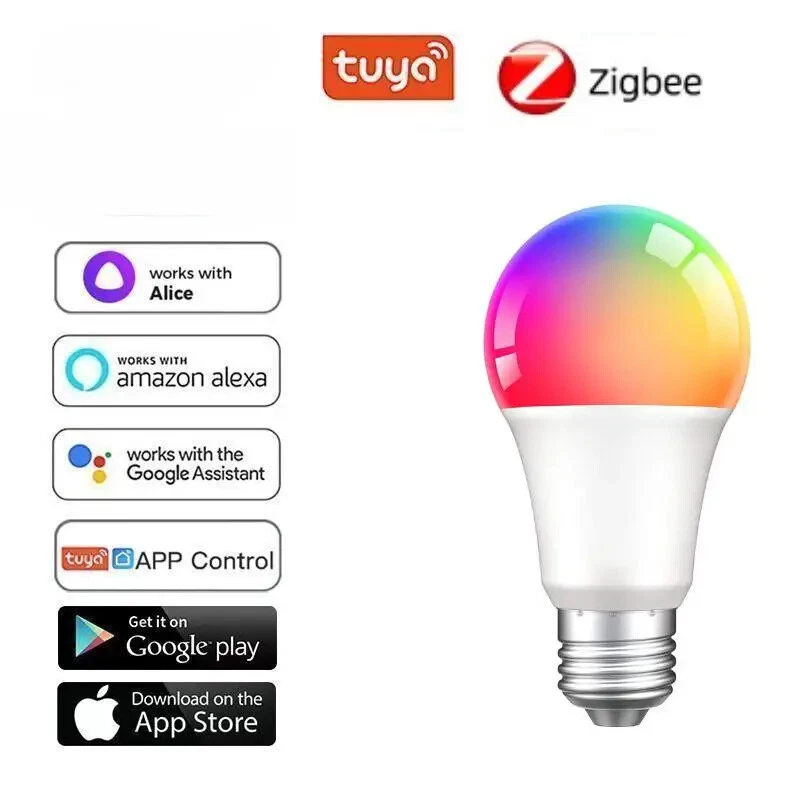 AUBESS Tuya WiFi ZigBee Smart Dimmable Magic Bulb E14 E14 GU10 RGBCW LED Bulb For Smart Life APP Alexa Google Home Yandex Alice Note: There are with E27, E14, Gu10 Lamps, and it is with WIFI Connect or Zigbee Connect. WIFI is not need the hub to connet , Zigbee is need the Zigbee hub to connect, When you buy before, please kindly confirm this. 【Adjustable brightness】 The brightness of the light can be changed according to yourself.Brightness 0-100% adjustable. 【Warm Cold RGB light changes】 DIY color: white light and warm color, 2700-6500K color temperature adjustable.16 million colors RGBCW full color adjustable, can be easily changed according to your mood. Change any room into a dance floor, or create a relaxing and tranquil atmosphere. Such as living room, kitchen, bedroom, etc. It can also be changed to white light, warm light, warm white light and so on. 【Timer/Schedule】 Set the light to turn on/off at a specific time, just like you can set the cycle time (24 hours), the light will automatically turn on and off every day. 【Scene and Music sync】 The default scene of the APP changes, you can also edit your own scene and customize the color change. There is music synchronization, you can open the music APP on your mobile phone, and smart life APP automatically captures the rhythm changes, so as to realize the rhythm changes of the light and the music. 【Voice control】 You can control the light on/off, color, and brightness through Alexa/Google/Alice voice. Example: "Alexa, turn the light to blue."--"OK!" 【Group and Sharing】 Share bulb control with family and friends to control the lights together. You can set up a group for the bulbs, you can control the bulbs at the same time 【Remote Control】You can Control your Bulbs at any time!
